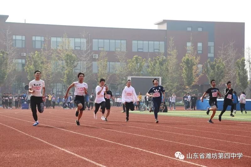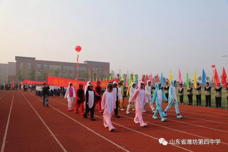 2019年10月19日,潍坊四中第71届秋季田径运动会暨第八届体育节隆重开幕。开幕式由潍坊四中党委书记、校长韩忠玉主持,坊子区教育和体育局党组书记、局长李汉军同志出席开幕式并讲话,潍坊四中党委班子成员以及学校校长助理、校务委员、各年级、各部门主要负责人,潍坊四中高一年级、高二年级全体师生及部分学生家长参加上午的开幕式。本届田径运动会和趣味运动会两部分组成,参加比赛的运动员由高一、高二两个年级共74个班级的3000多名同学和500多名教职工组成,运动员们将以“文明、友谊、拼搏、向上”为宗旨,以“参与第一、健康第一、团结第一、友谊第一”为目标,充分展示四中人拼搏进取的精神风貌!