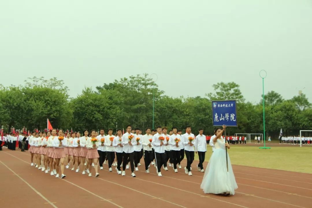 在慷慨激昂的音乐中,国旗班迈着整齐划一、铿锵有力的步伐率先亮相,紧随其后的是热情似火的鲜花队,迎风启航的彩旗队,庄严肃穆的校卫队,还有朝气蓬勃的裁判团,以及有着鲜明专业特色的各系代表方阵。