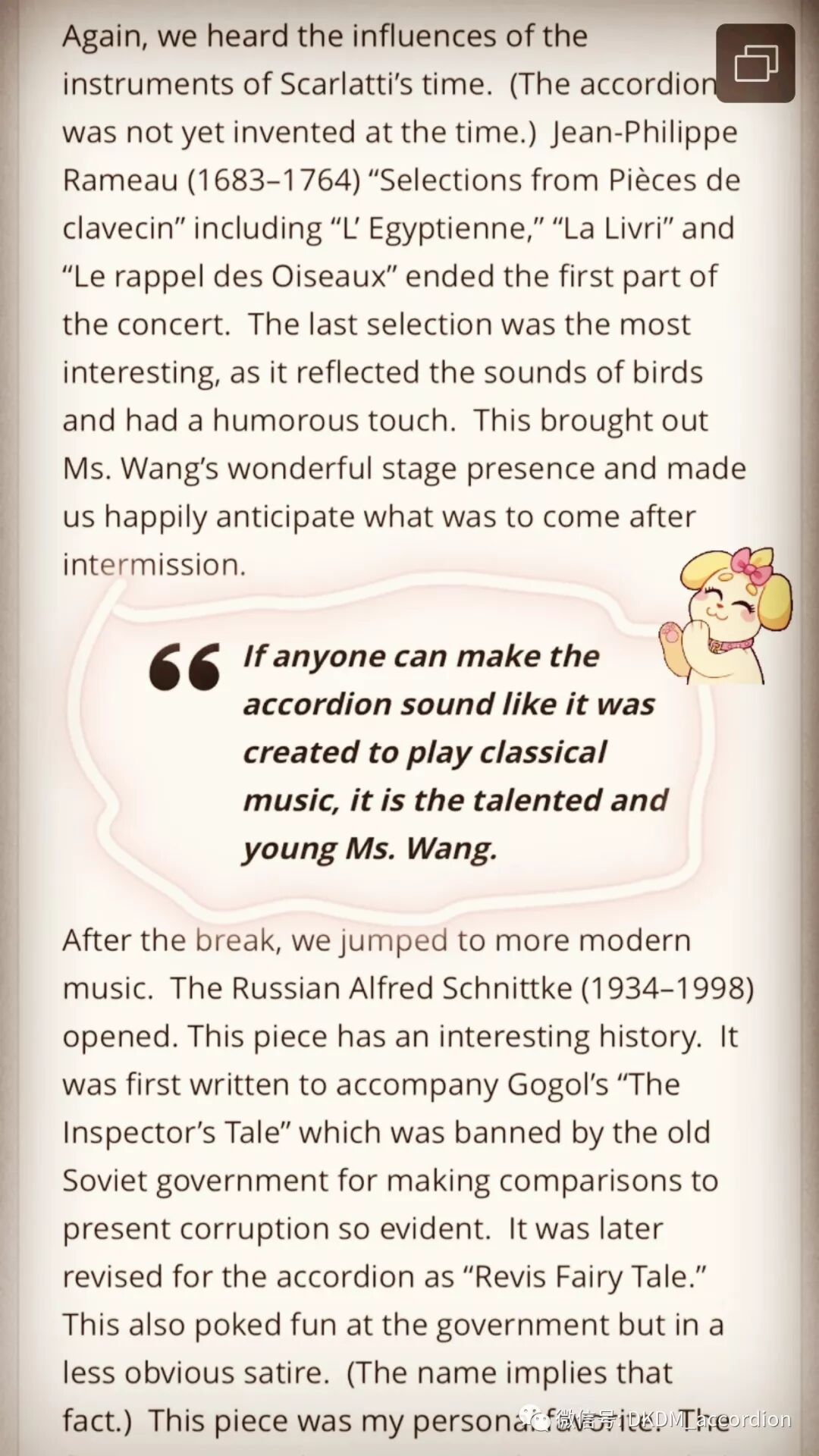 如果有人能让手风琴听起来像古典音乐为手风琴而原创,有才华的王寒之做到了。