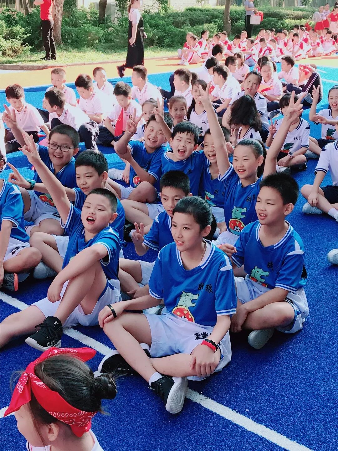 校园操场分为三大比赛区域,五六年级、三四年级、一二年级分别在三个崭新的绿茵场组织开展活动。三块场地相对独立,又连成一片整体,同一时间有六场比赛同时进行,校园变成了大型体育盛会,全体师生在场上、场下全部沸腾起来,70场比赛有序进行。