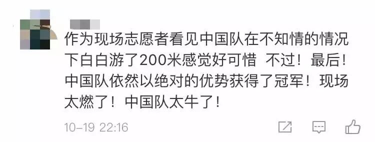 许多网友点赞:多游200米还能夺冠,中国队就是牛!