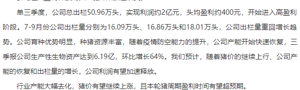 作为2季度重灾区的天邦,疫情让股价腰斩,3季报后核心数据,生产性生物资产环比大幅提升,公司产能快速恢复,股价也有了30%的涨幅。