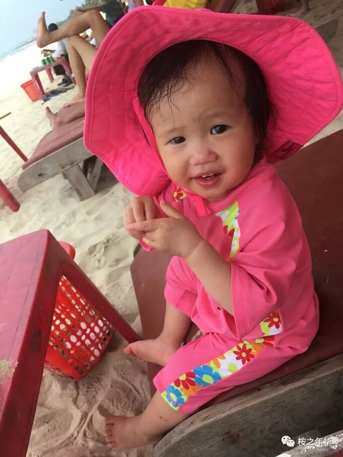 打车回了美溪海滩另外一个度假区。先随便吃了点,点的鱼粥里面鱼和米很少,汤超级多。蒸豆腐没有味道,蘸水不好吃。然后去度假区租了两张躺椅,准备懒一下午。中午的美溪艳丽多姿,随便拍一张都美如画。睡了一觉起来准备换上泳衣玩水,lee不玩水我一个人也没玩多尽兴。桉桉也怕水。无奈便回躺椅上准备吃东西。旁边一个 美国 女给我们吃了他们点的 越南 牛肉卷,瓦萨,好像 中国 的火腿肠!很好吃!入口还有一粒一粒的香料。后面我们也买了份,30k一份,有十个左右。还买了烧烤鱼丸,猪肉丸,虾。这次专程要了辣酱,味道像 韩国 泡菜甜辣味。很棒!