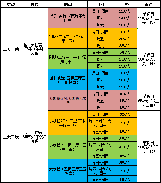 B套餐:3餐=当日晚饭+次日早饭、中饭