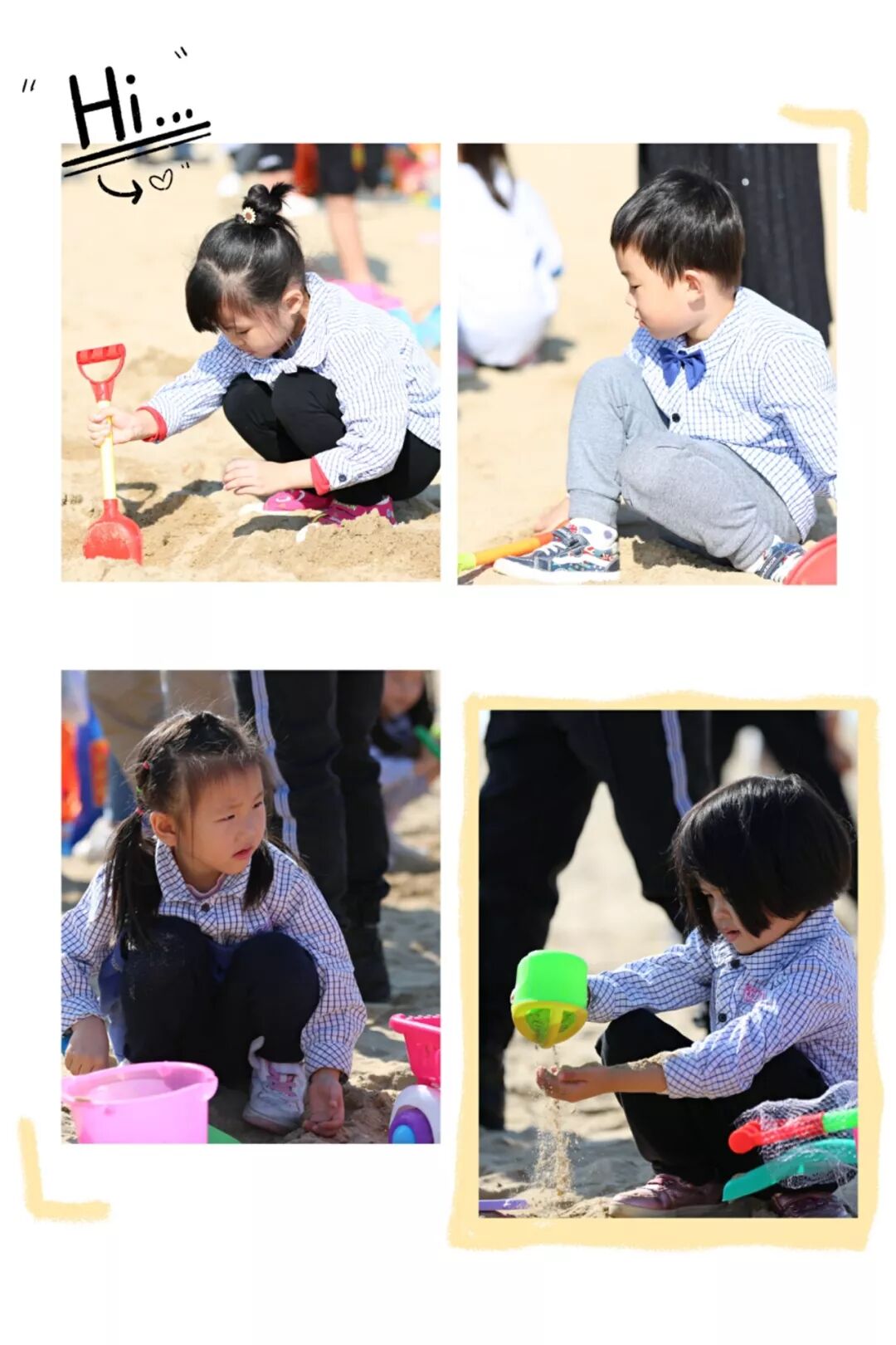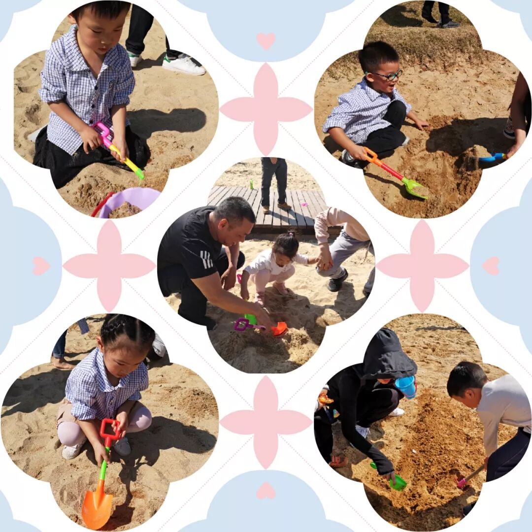 寻宝之旅开启啦!孩子们拿起了小铲子和小沙桶,开始探寻宝藏的秘密。大家一起堆小山,挖地洞,建城堡,找宝藏。孩子们沉浸其中,其乐融融。