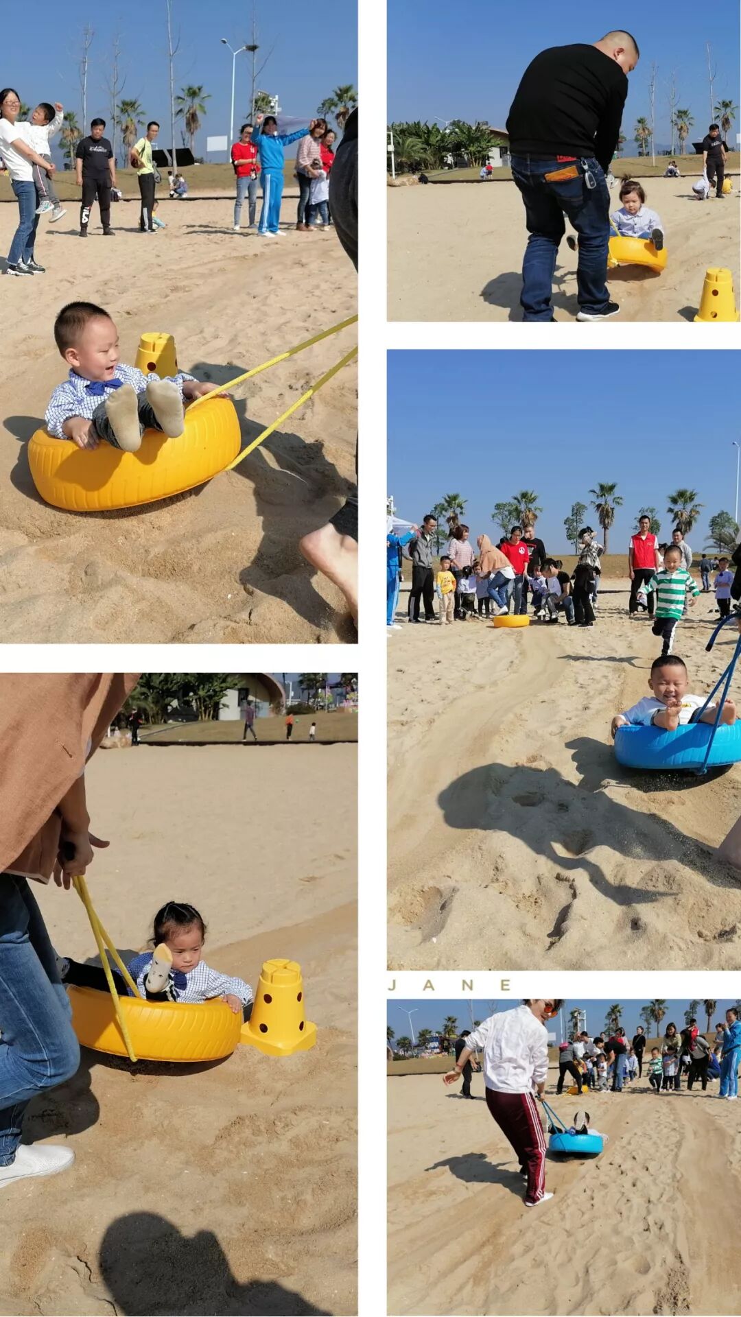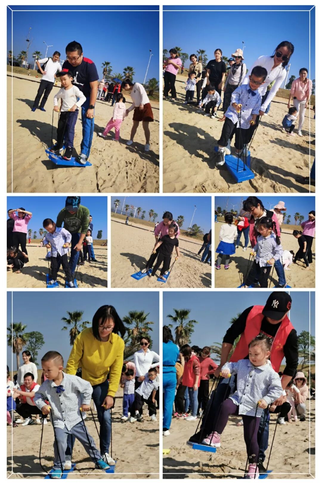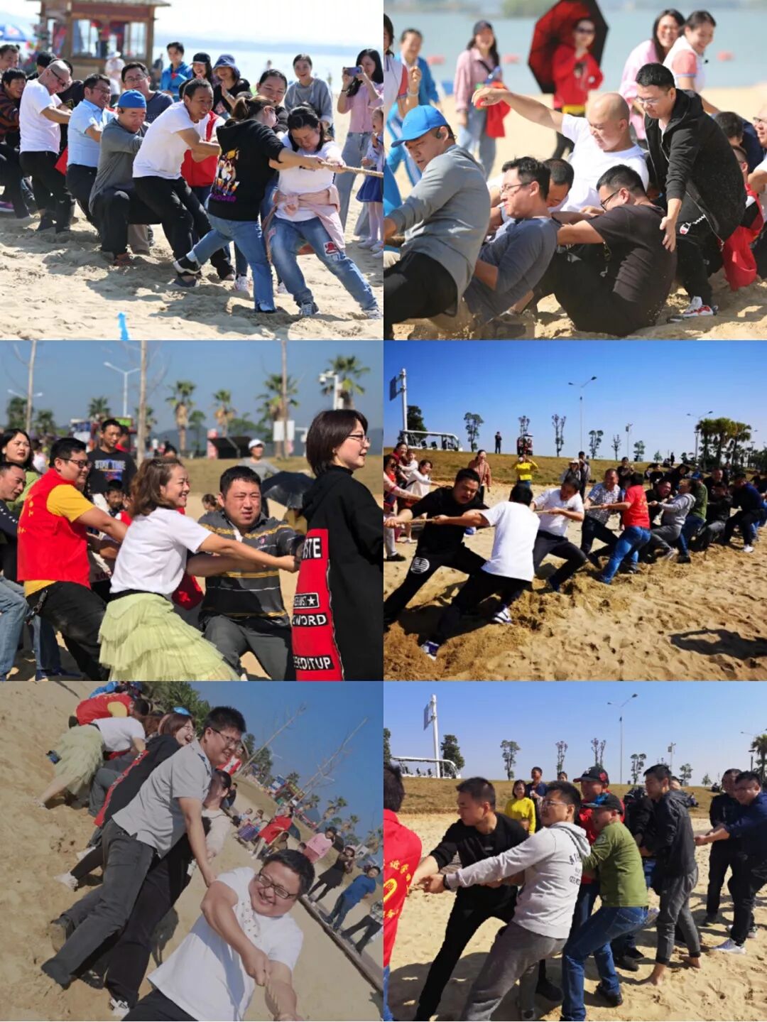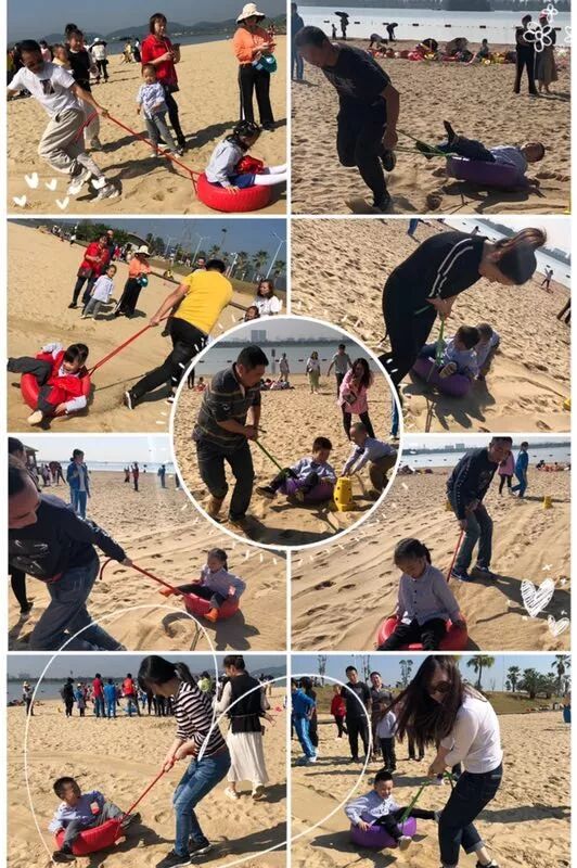 “爸爸加油、妈妈你是最棒的!”伴随着孩子们响亮的助力声,沙地拔河正式开始!“战况”激不激烈?随我往下看吧。