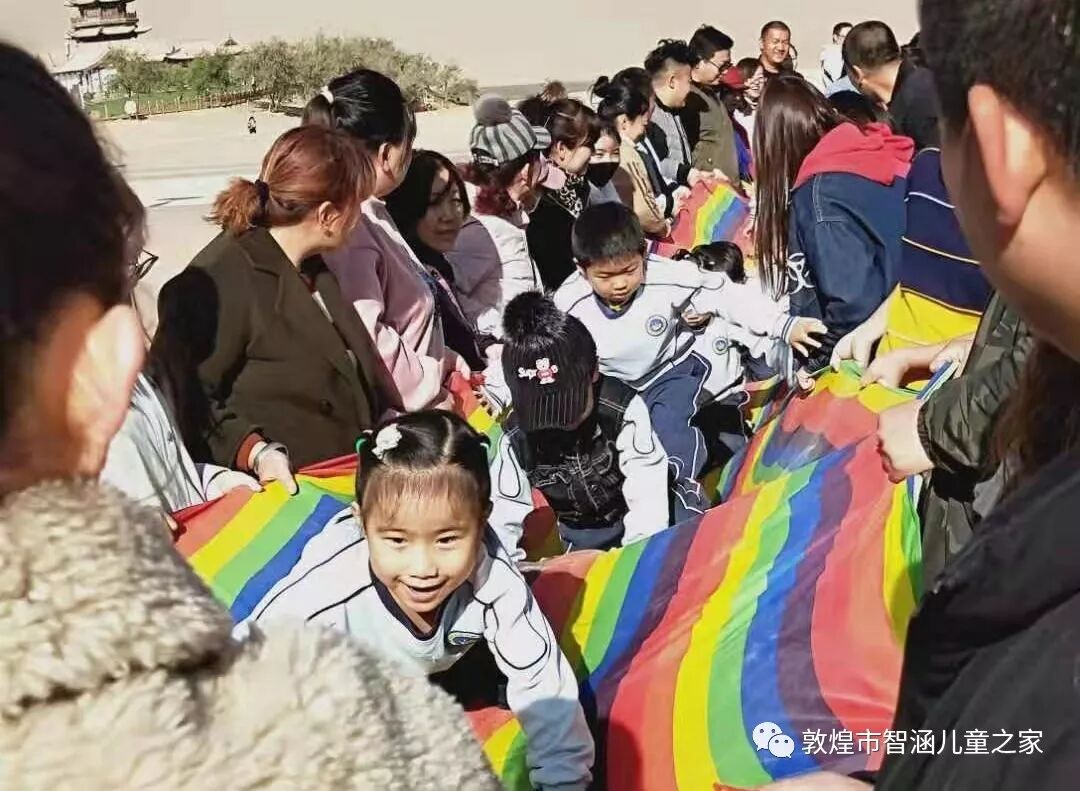 3、钻洞式滑溜布:锻炼家长的臂力,锻炼孩子的钻爬能力。