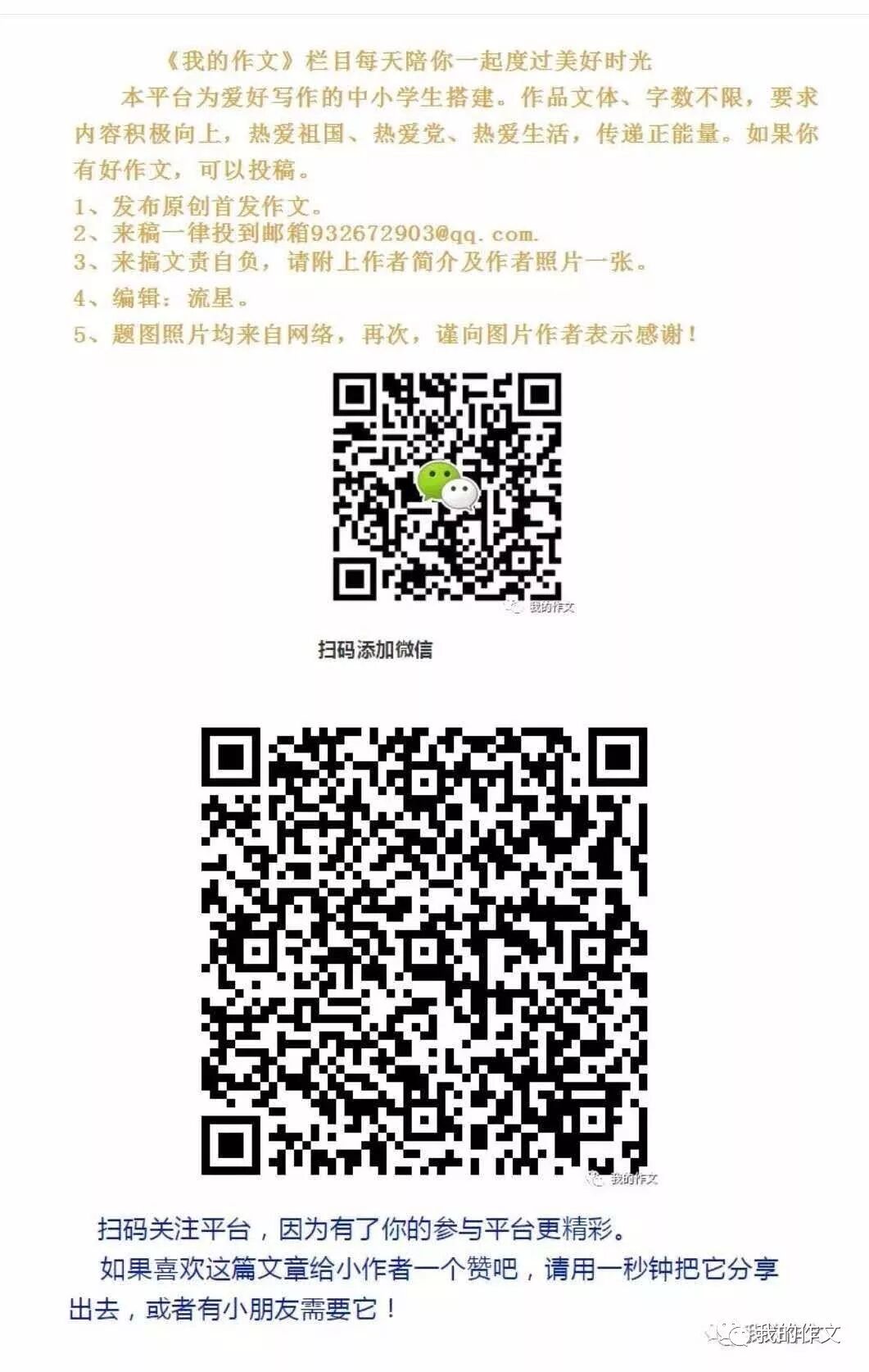 朗诵者:侯煜坤今年8岁,热爱下围棋、弹钢琴、朗读、写作,在数学竞赛中获二等奖,是个活泼可爱的小暖男。