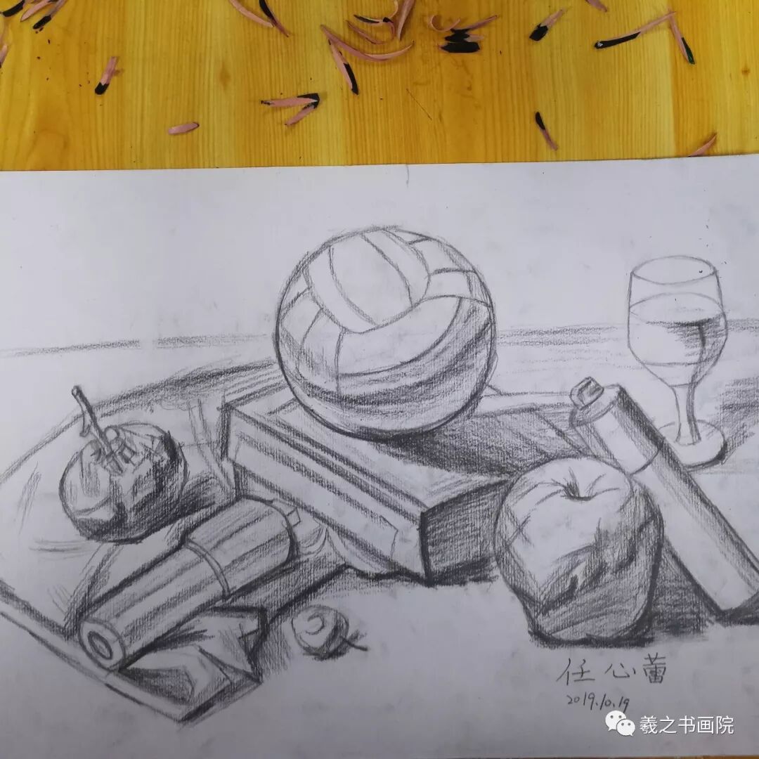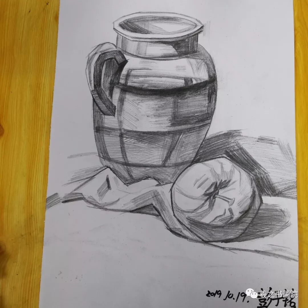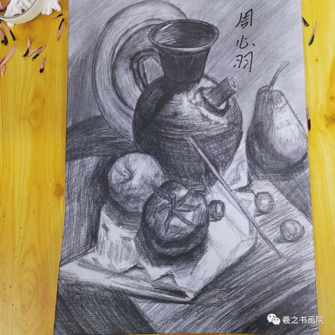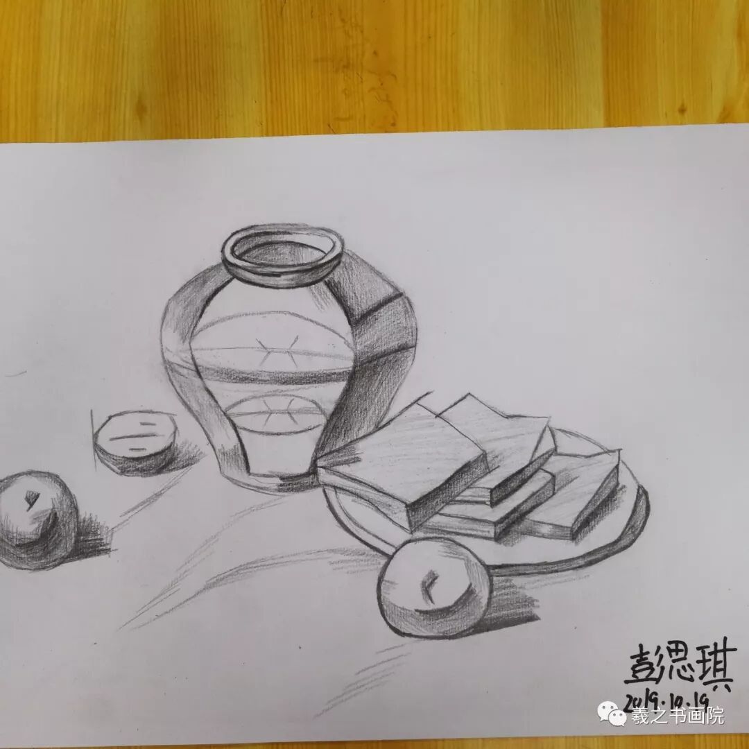 各位家长好!以下是孩子们本周末10月19、20日学生素描、色铅笔和水粉作品,请大家欣赏!