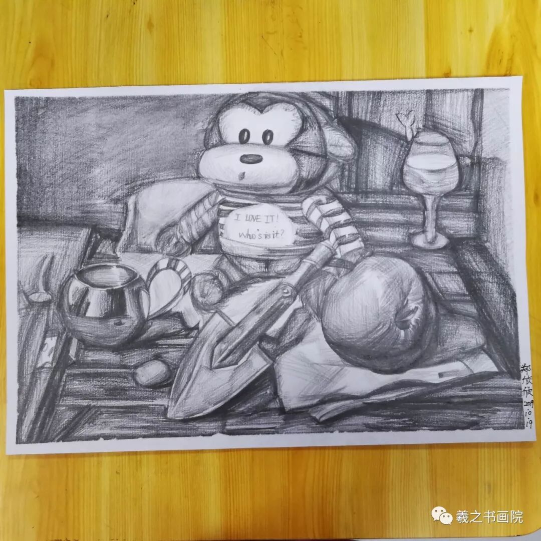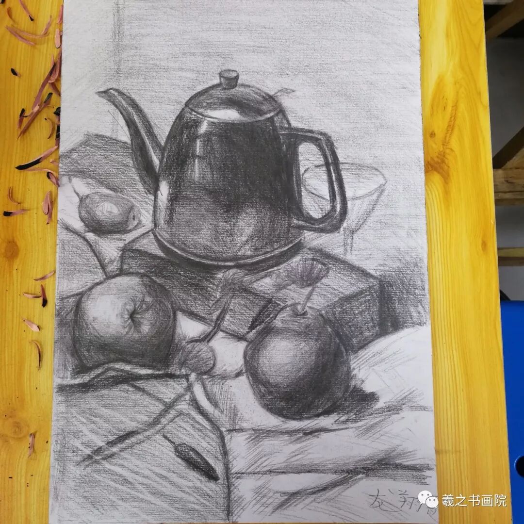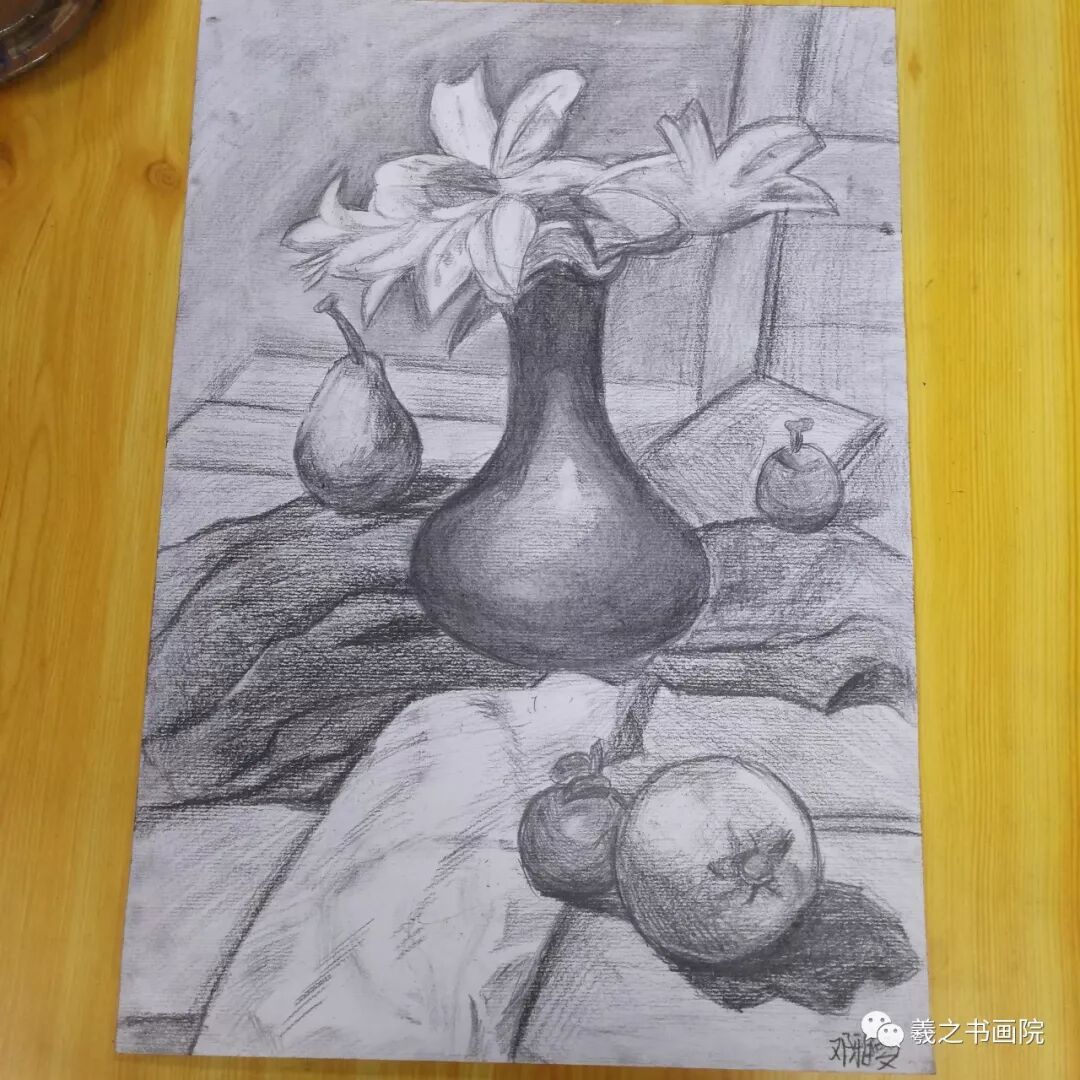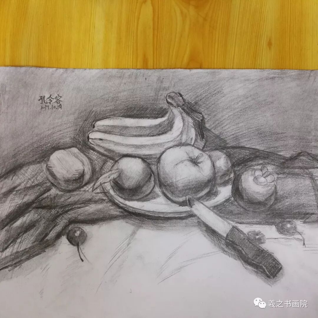 各位家长好!以下是孩子们本周末10月19、20日学生素描、色铅笔和水粉作品,请大家欣赏!