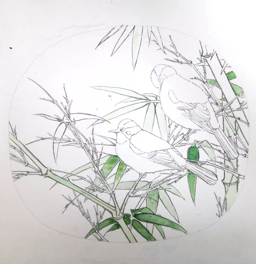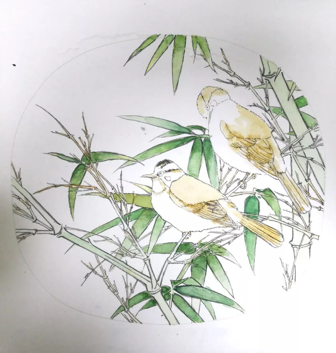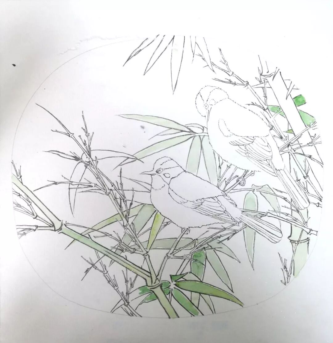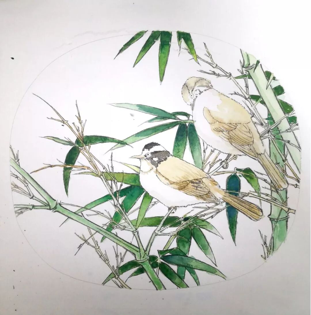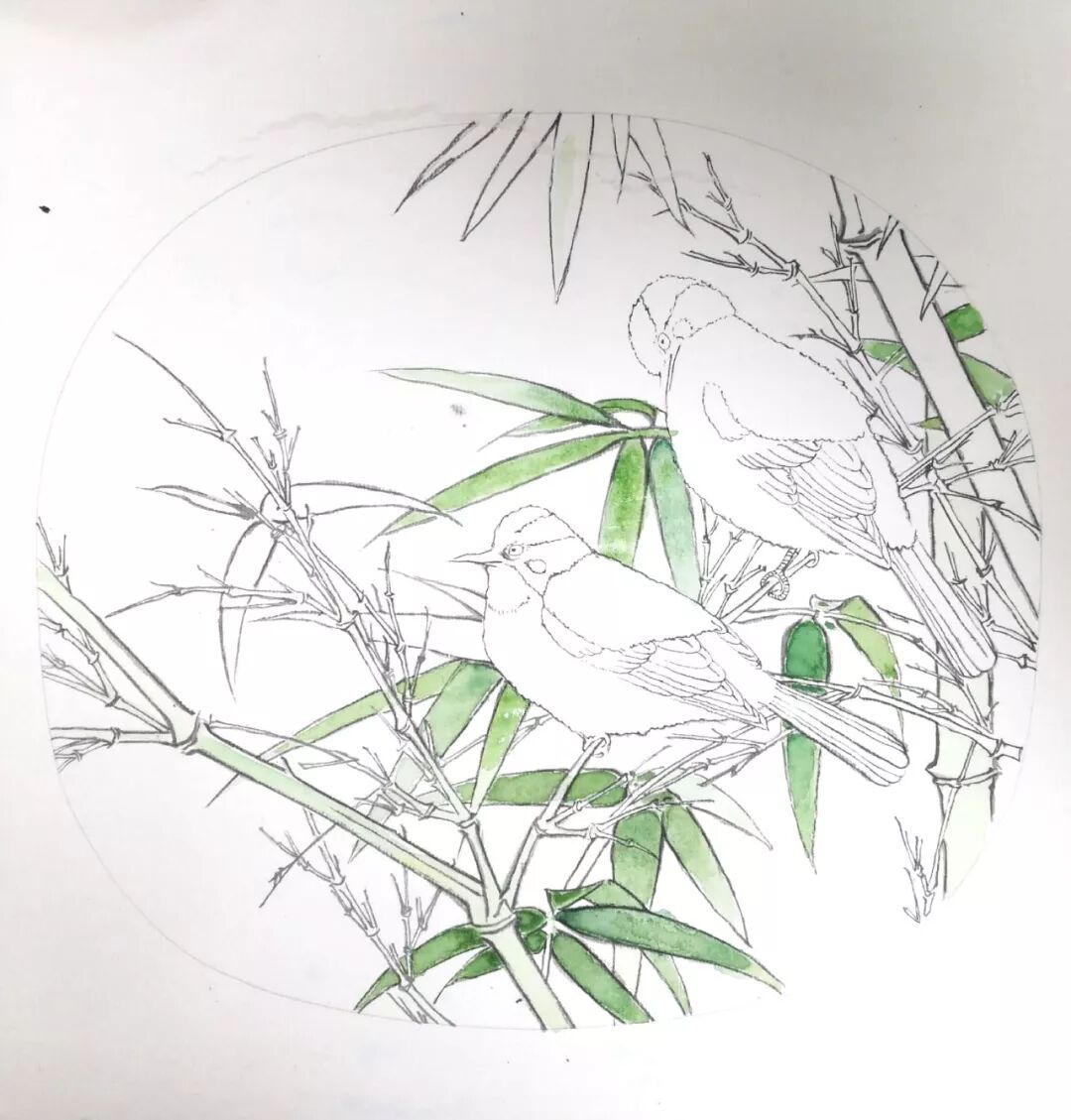 给竹叶添加重色晕染,画出叶子上的渐变色