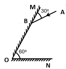 5.如图,两平面镜MN夹角为60o,一束光AB与M成30o角射在平面镜上,试画出经两平面镜反射后的完整光路。