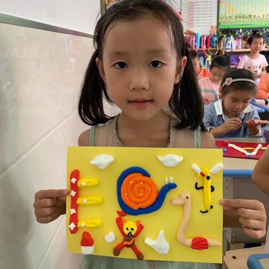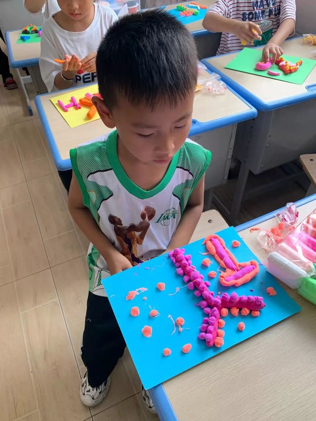 02轻泥小中队-102班苏霍姆林斯基曾说:“儿童的智慧在手指尖上”。这句话形象地解释了学生思维发展与动手操作之间的关系。我们借助拉、搓、捏、压等技法来完成字母大变身创作。