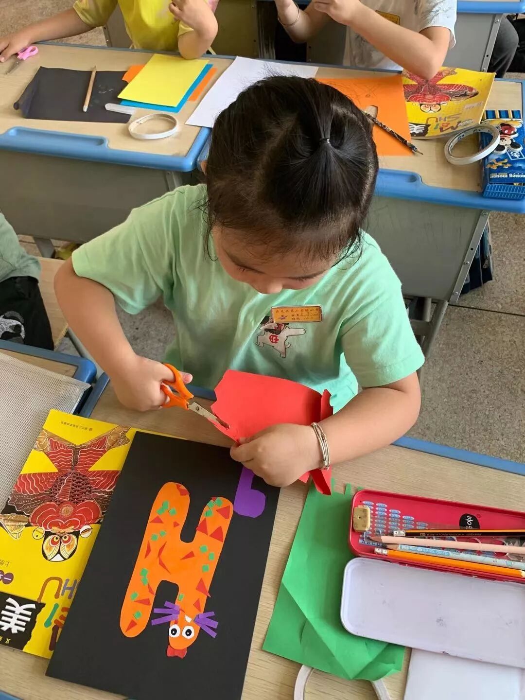 在美术中,剪贴画是一种特殊的画,通过剪、贴充分展现色彩的美感。而生活处处有艺术!瞧,简单的卡纸在酷爱美术的103班孩子手中马上变成了一幅幅精美的字母剪贴画作品。