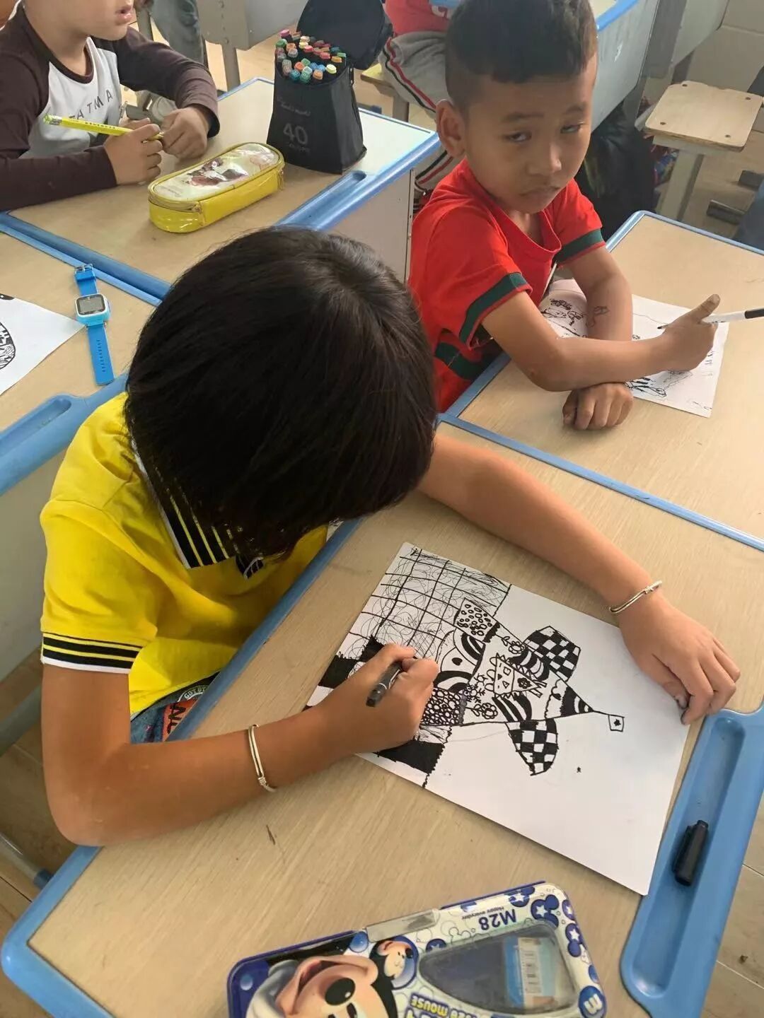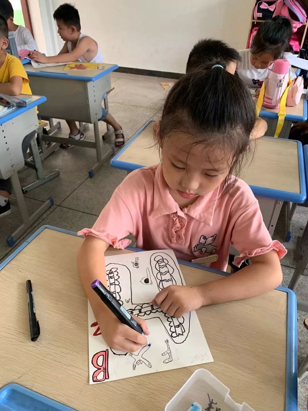 绘画小中队-104班美源于生活,超越生活。104班的绘画小中队拿起画笔,专心致志地挑选颜色来装扮字母。来,让我们一起走进多姿多彩的绘画世界吧!