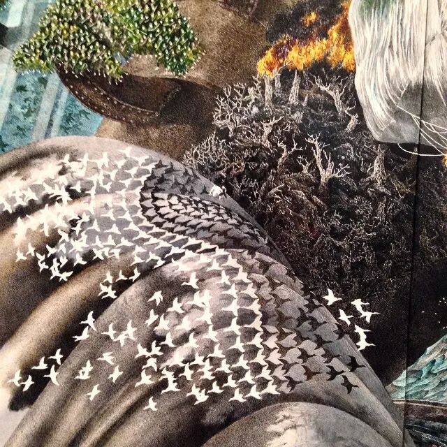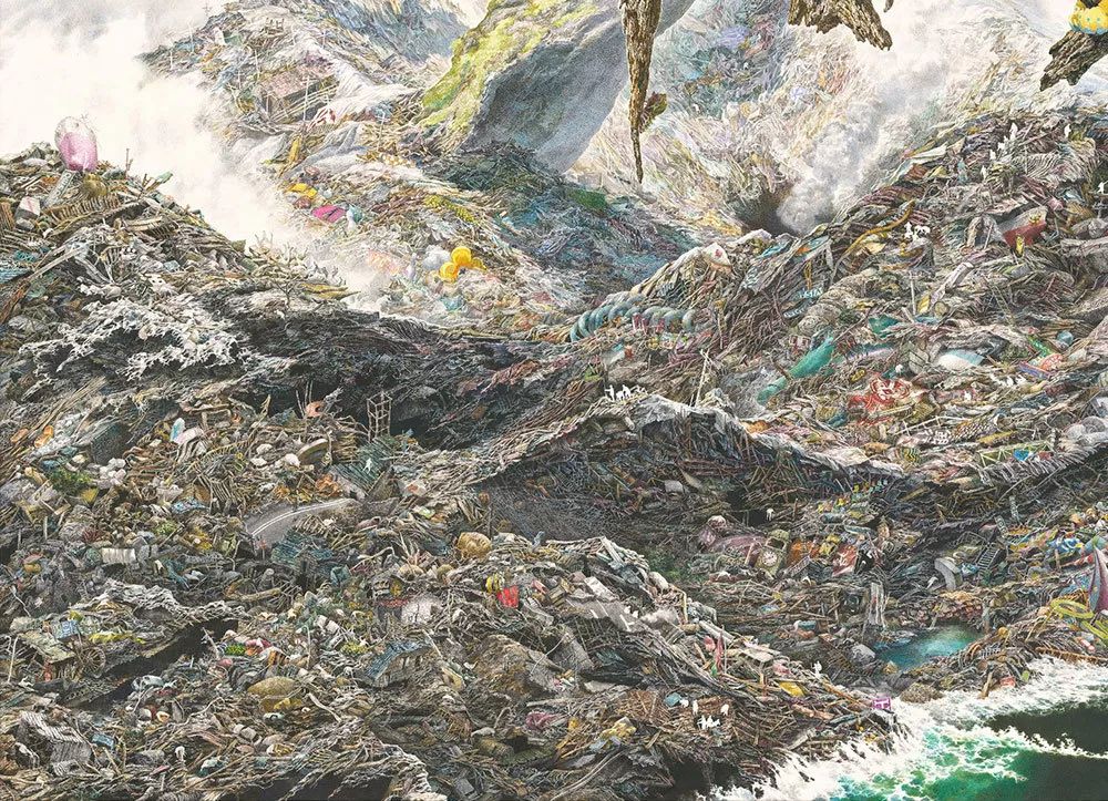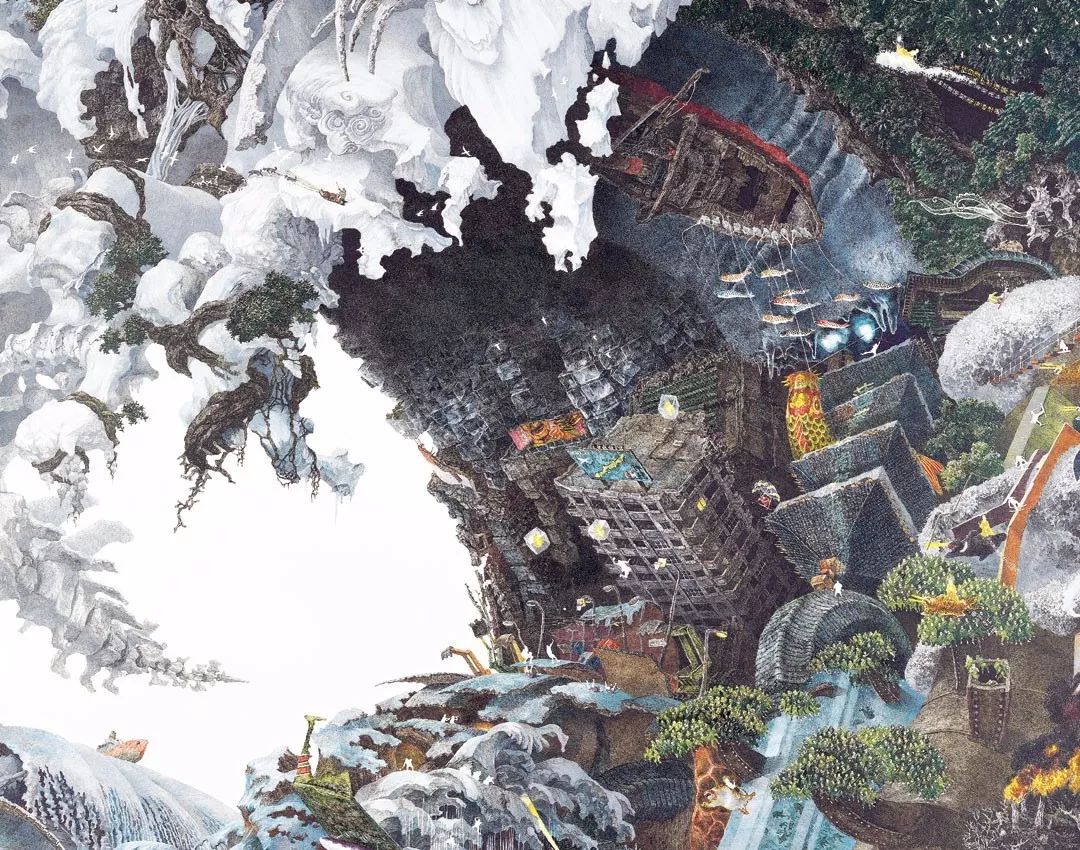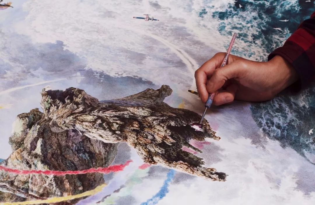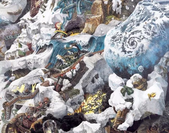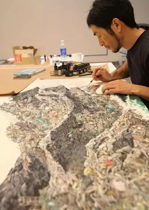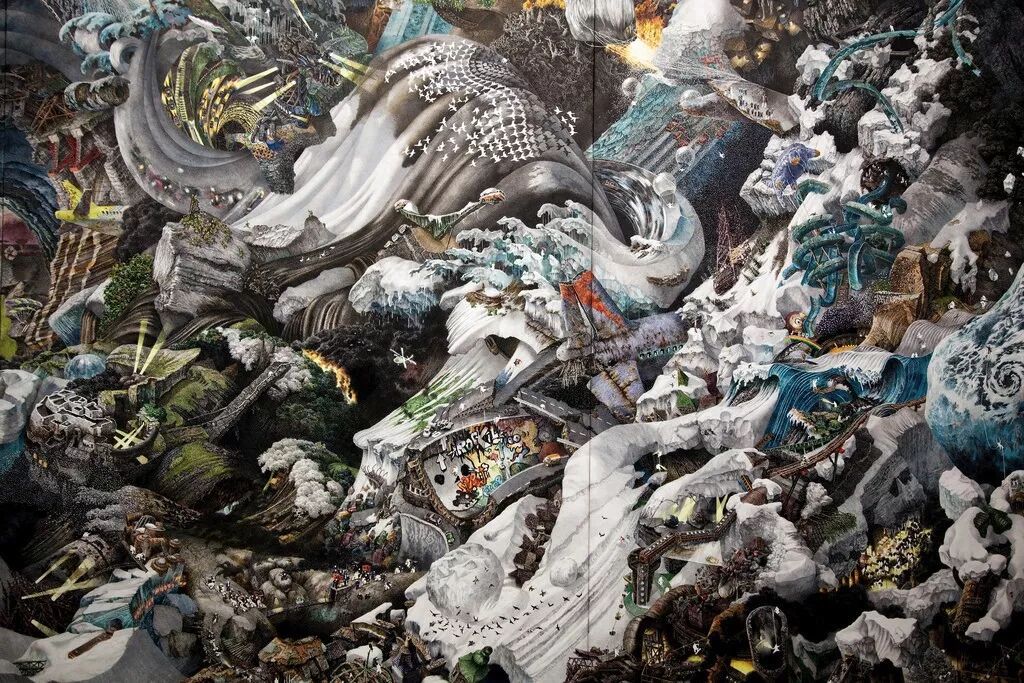 在2011年日本地震和海啸后日本受到严重伤害近七年一直在修复而池田学经历过这些后便开始了他的大型绘画“新生”的绘制