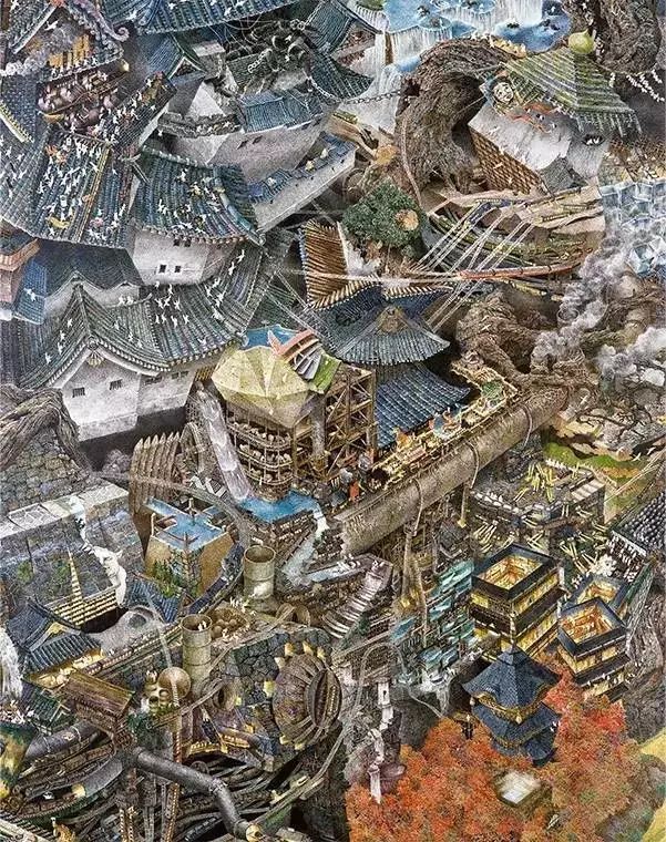 几乎不存在修改的余地池田学通常在起笔之前在他脑海中就已经有了精确的图像一道道钢笔的线条经年累月最终形成壮观的风景在每一寸注入的心血而引人入胜
