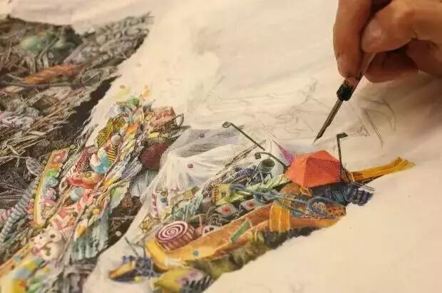 他却非常喜欢这种绘画方式从细节入手绘制随着时间的推移而获得创意灵感这个过程会引起作者无法预测的想象力令人期待
