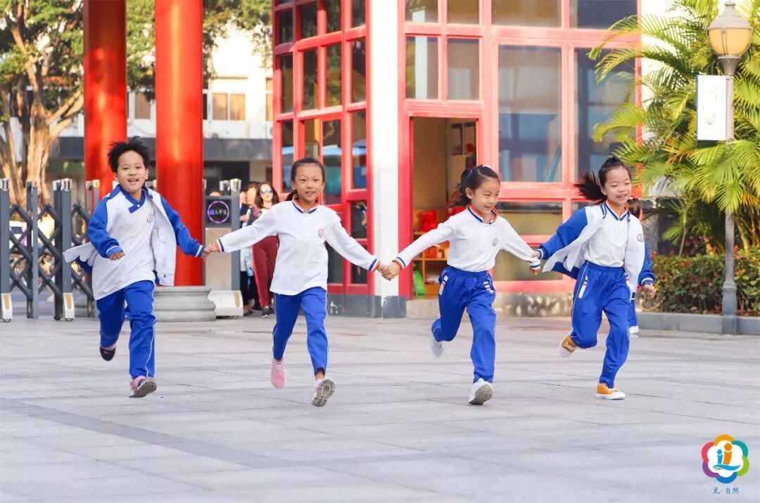瞧!鸟鸣奏乐,阳光开路,孩子们踏歌而来,灿烂的微笑书写着他们的热情,挥舞的双手蕴藏着无限的能量。