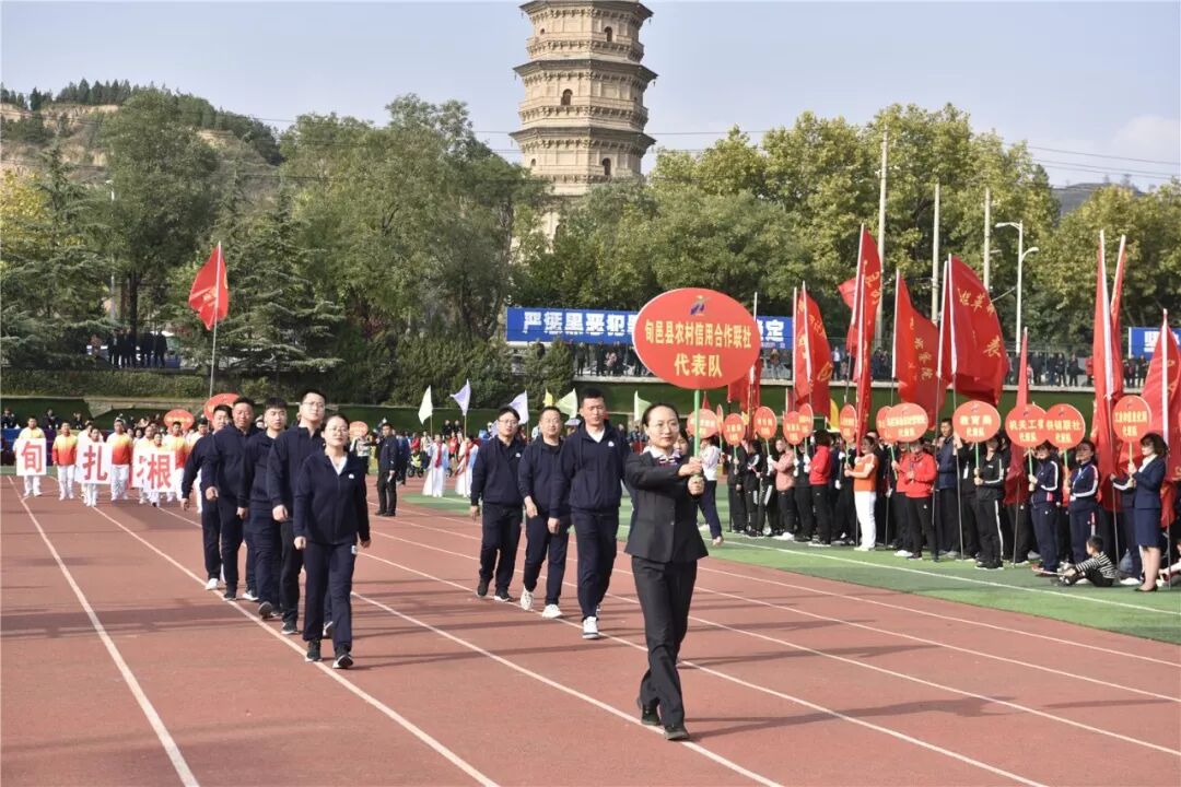 伴随着雄壮的《运动员进行曲》,来自全县各镇办、部门、企业、协会的六十多支代表队在国旗、会旗、百人红旗队、表演队的带领下依次步入会场,充分展示了全县干部群众的时代风采和旬邑发展的良好形象。
