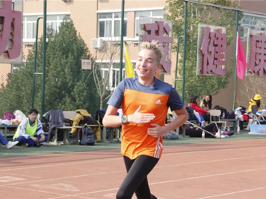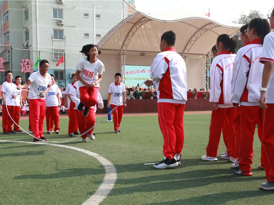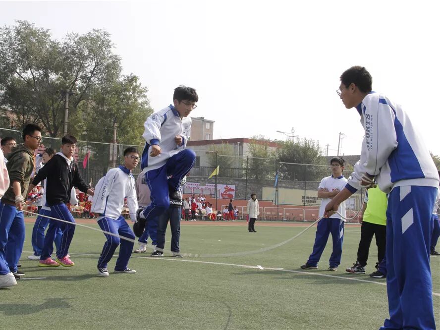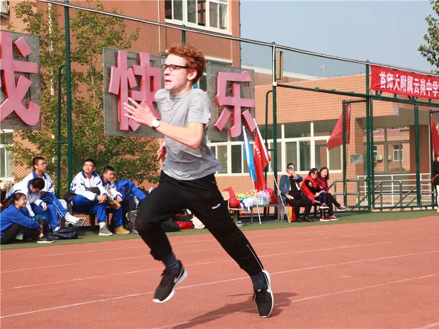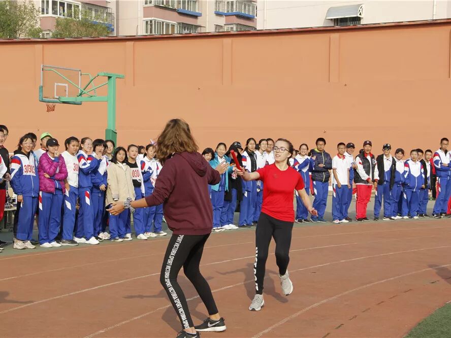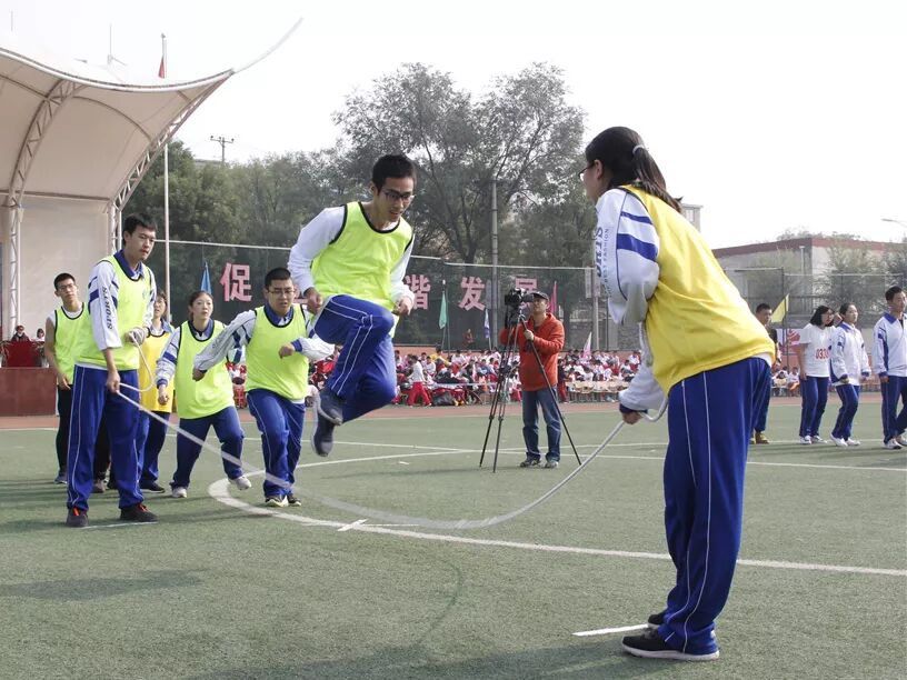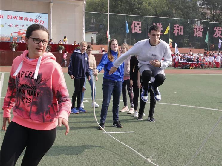 在我校访问交流的德国沃勒尔高级中学的学生和我校学生进行了8字跳绳和接力比赛,将运动会气氛推向高潮。