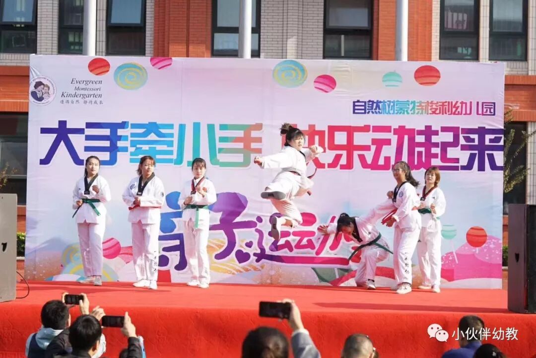 2019年的今天,小伙伴团队再一次为自然树幼儿园的孩子家长们带来快乐。首先我们自然树的老师为我们的孩子们带来一段震撼人心的跆拳道,表演看我们老师们的飒爽英姿,谁说女子不如男!