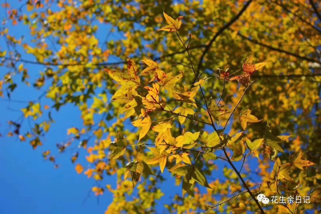夏去秋来花落去,遍地璀璨是金菊。蝴蝶舞花随风逝,人过树影一片红。