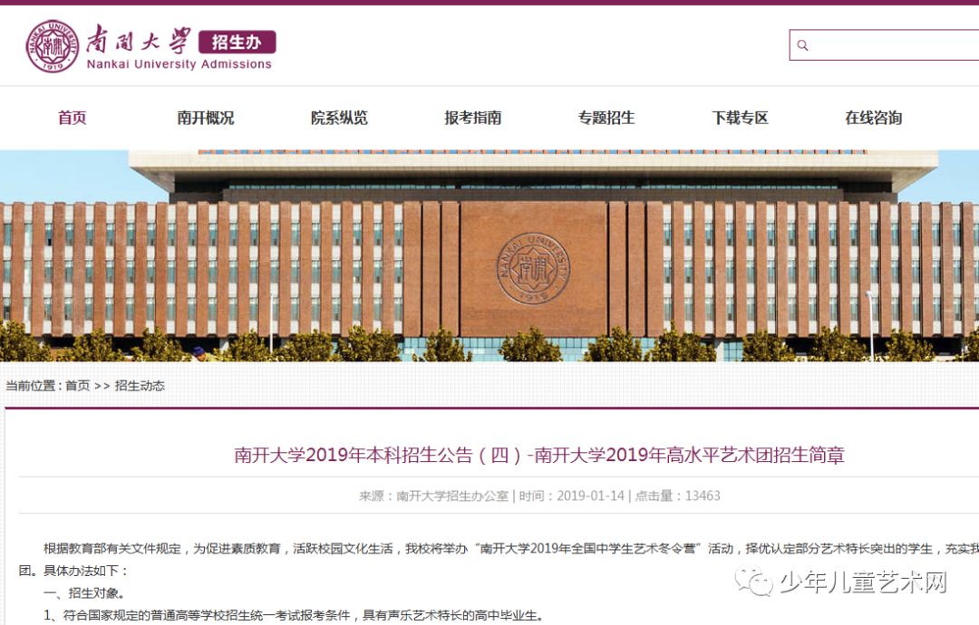9 南开大学 符合国家规定的普通高等学校招生统一考试报考条件,具有美术、器乐、声乐等艺术特长的高中毕业生。各类社会考级等级证书复印件、获奖证书复印件等证明材料。