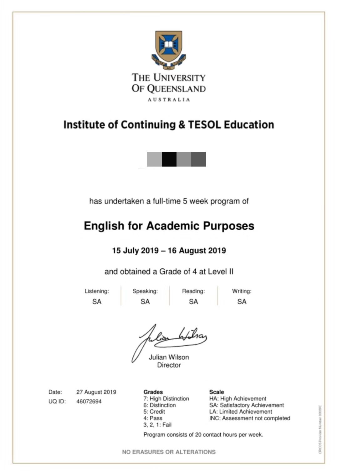 项目结束后将获得昆士兰大学颁发的项目结业证书。