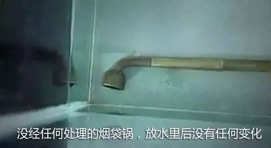 实验二:这是在农村专门找的一个抽了40年的老烟袋锅,首先我们把老烟袋锅放在水里,结果烟袋锅里面的烟垢却没有流出來,接下來我们把陶教授?清烟宝里的小胶囊密封在老烟袋锅上,点上烟,一支烟抽完後,再把烟袋锅放在水里,这時烟袋锅里流出黑黄的烟垢。