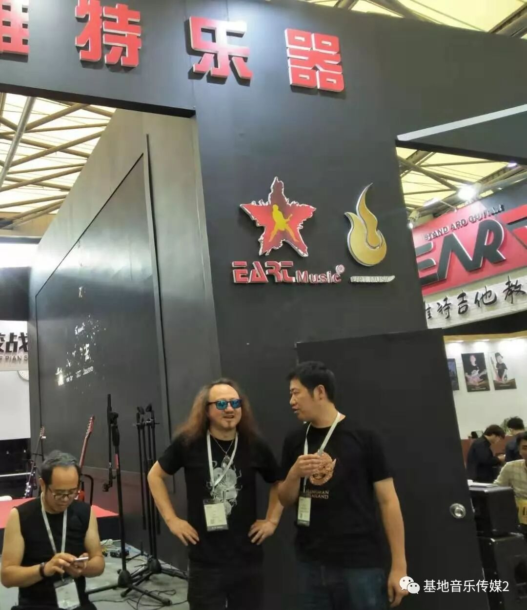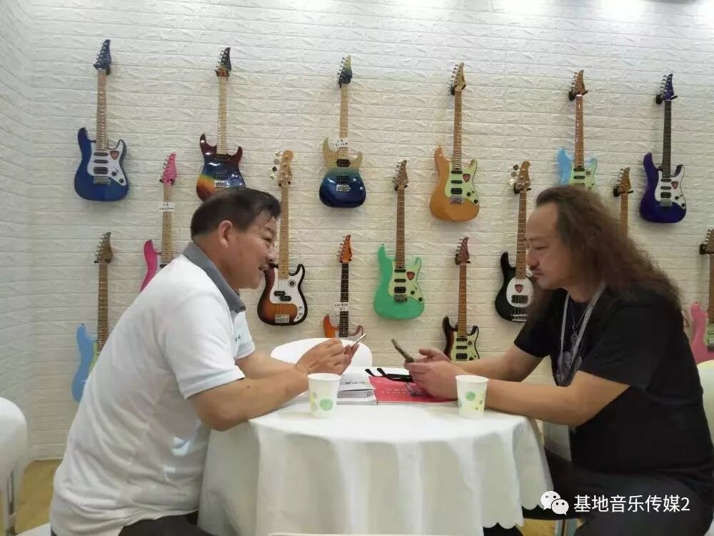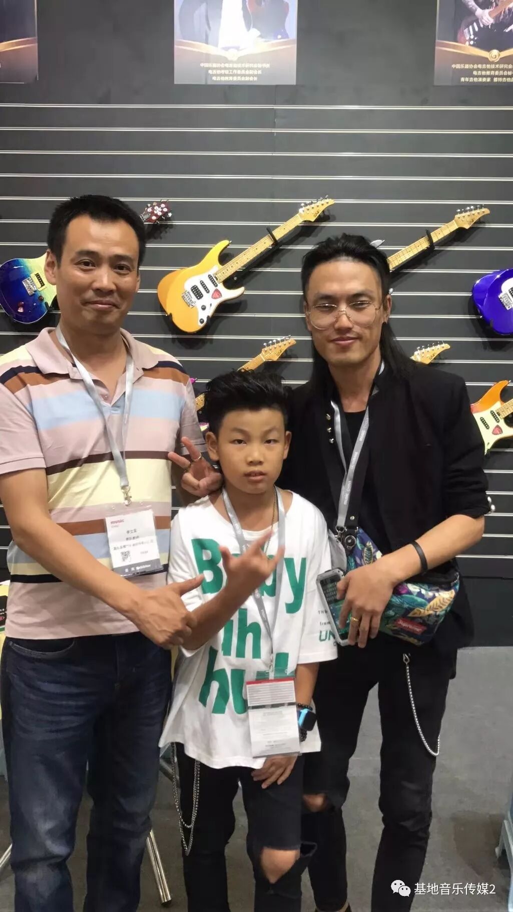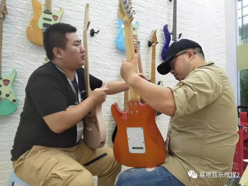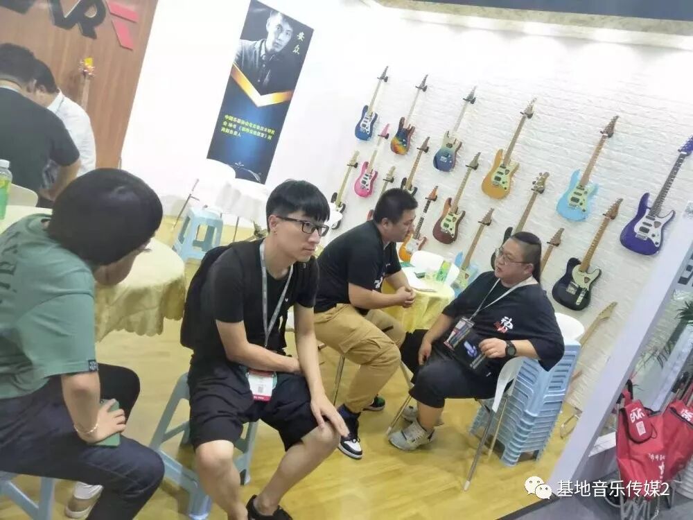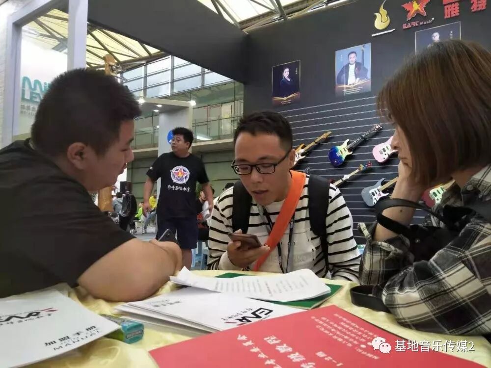 吴 琳(中)在展会上讲解他编著的吉他教材