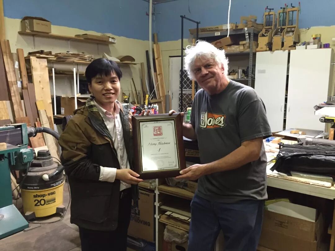 2015这年,请客户吃饭不超100块的“抠门汉”彭进辉毫不犹豫的带着研发团队远赴美国和吉他大师 Ervin Somogyi、Roger Siminoff、Harry Fleishman等学习制琴技术,一天学费就是8000美金。