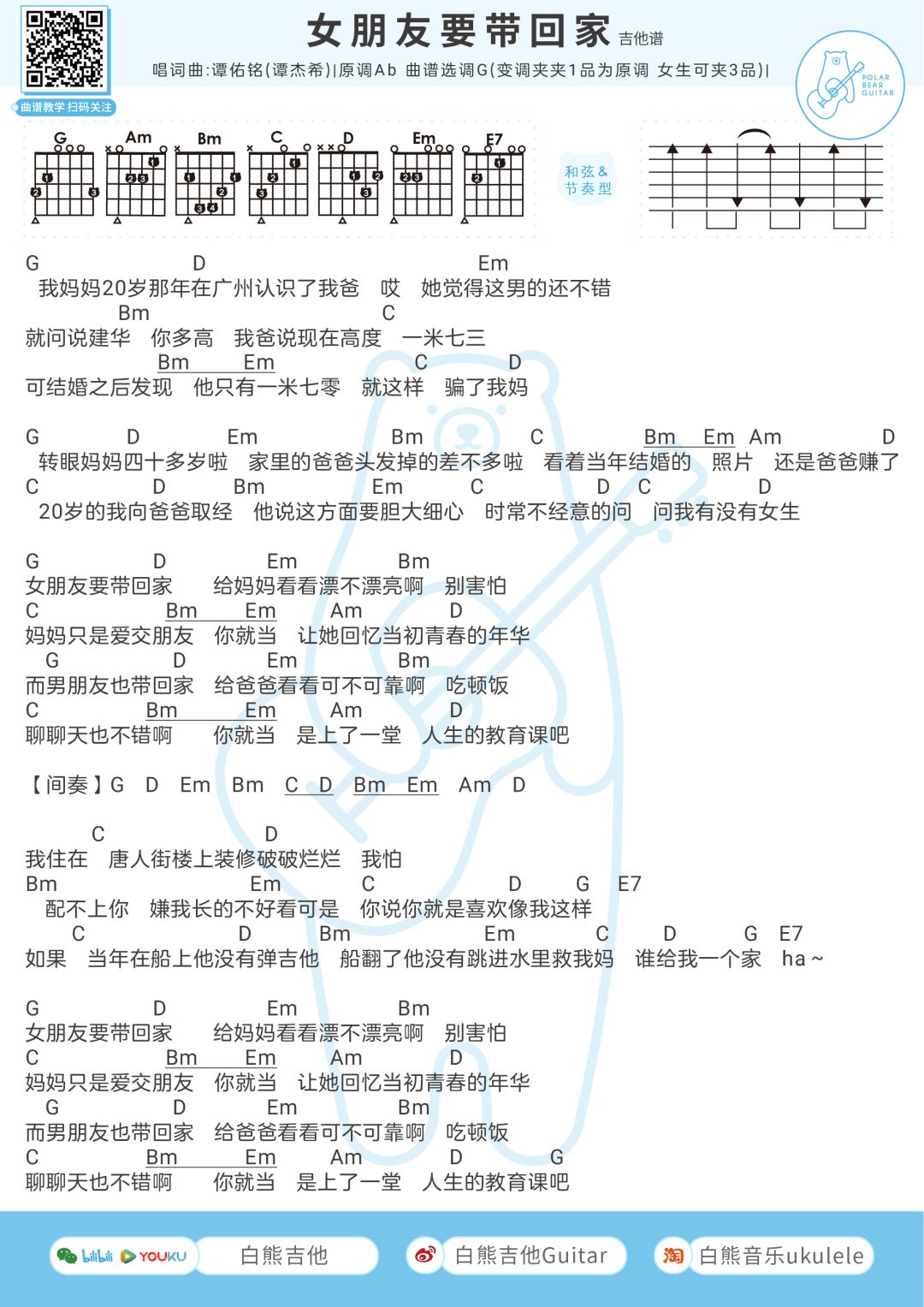 ○〈女朋友要带回家〉是由谭杰希作词作曲演唱的歌曲。收录于快乐男声2010年9月发行的合辑《我的舞台》。(谭杰希,现更名为谭佑铭 )