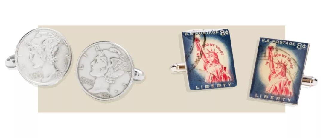 其实除了衬衫、领带、小皮鞋等西装单品能够增添绅士风范之外,铲地认为对于袖扣的选择同样也能够成为个人的“加分项目”。而 Brooks Brothers 就有推出不少 Vintage 十足的袖扣,原汁原味的美国制在上面体现得淋漓尽致,譬如说印上美国自由女神图案、印第安人头像、条纹珐琅纹理等,又或是用丝线与树胶打造的复古结,丰富的选择甚至让我这位女同胞有点羡慕,原来男生也能如此精致...