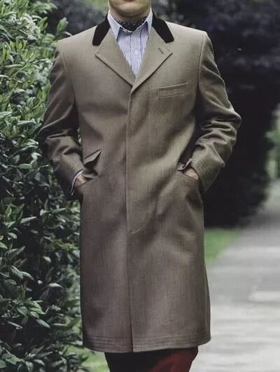 这款大衣的特点是非常合身,它可以是双排扣或单排扣,有褶或无褶,也可以有口袋,是当下最常见也最流行的大衣版型。