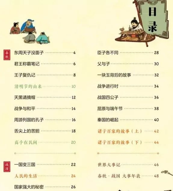从目录上就可以看出,这段历史时期分为春秋时期和战国时期。书从东周开始一直讲到秦国崛起: