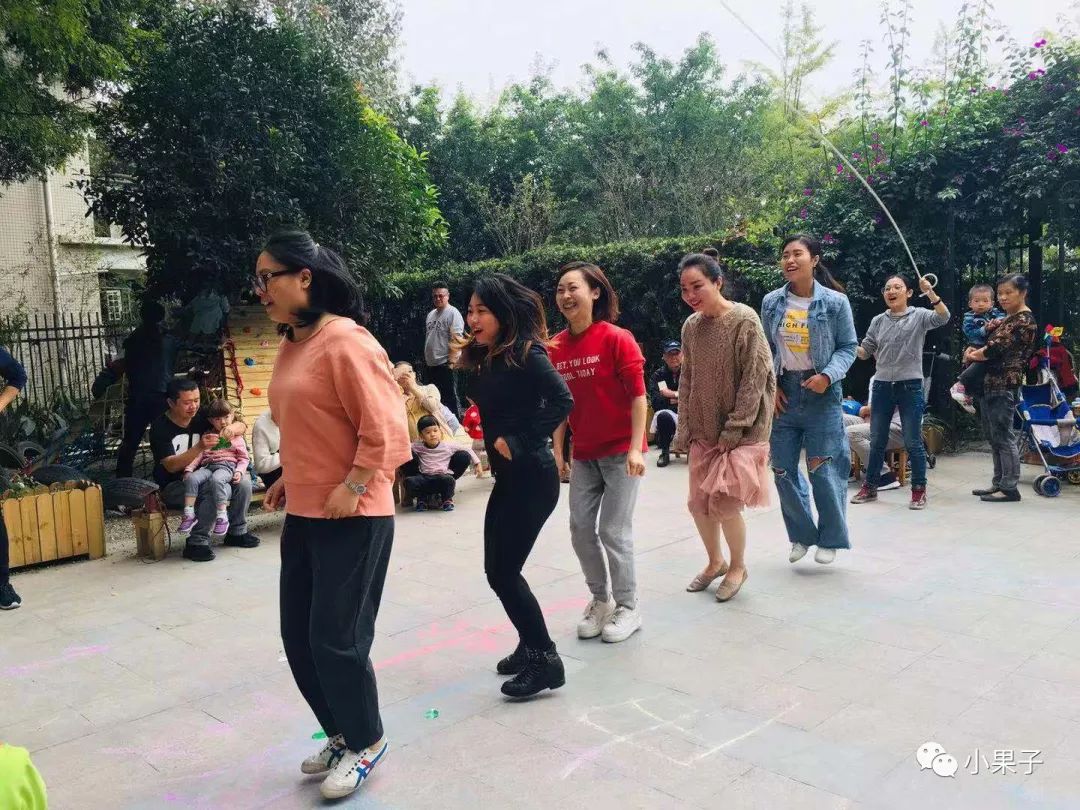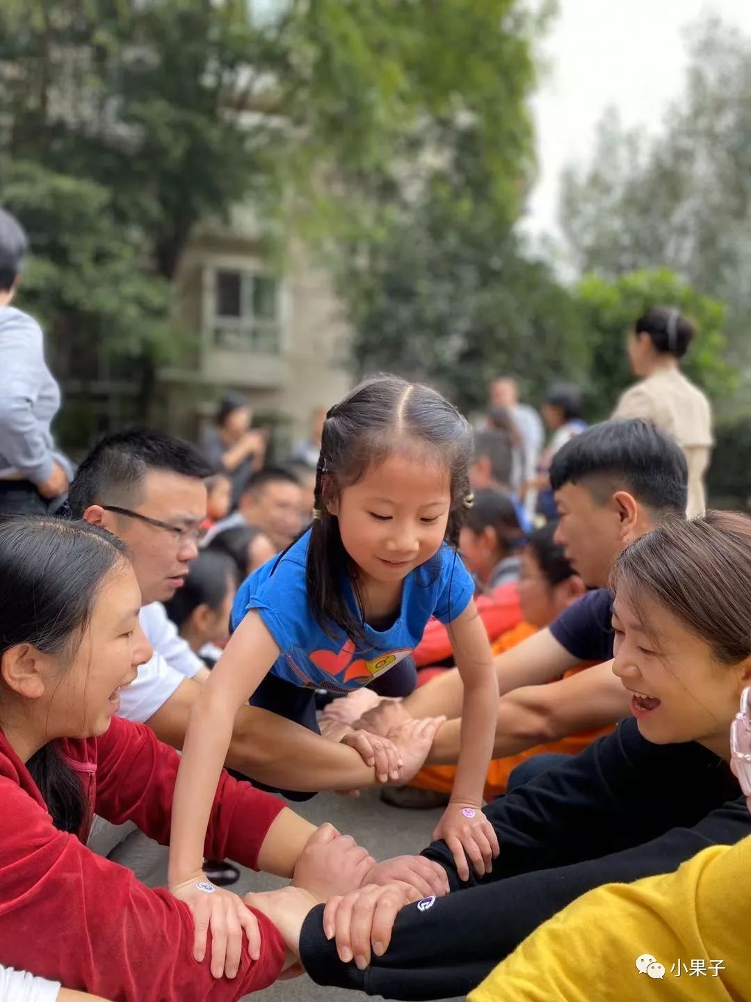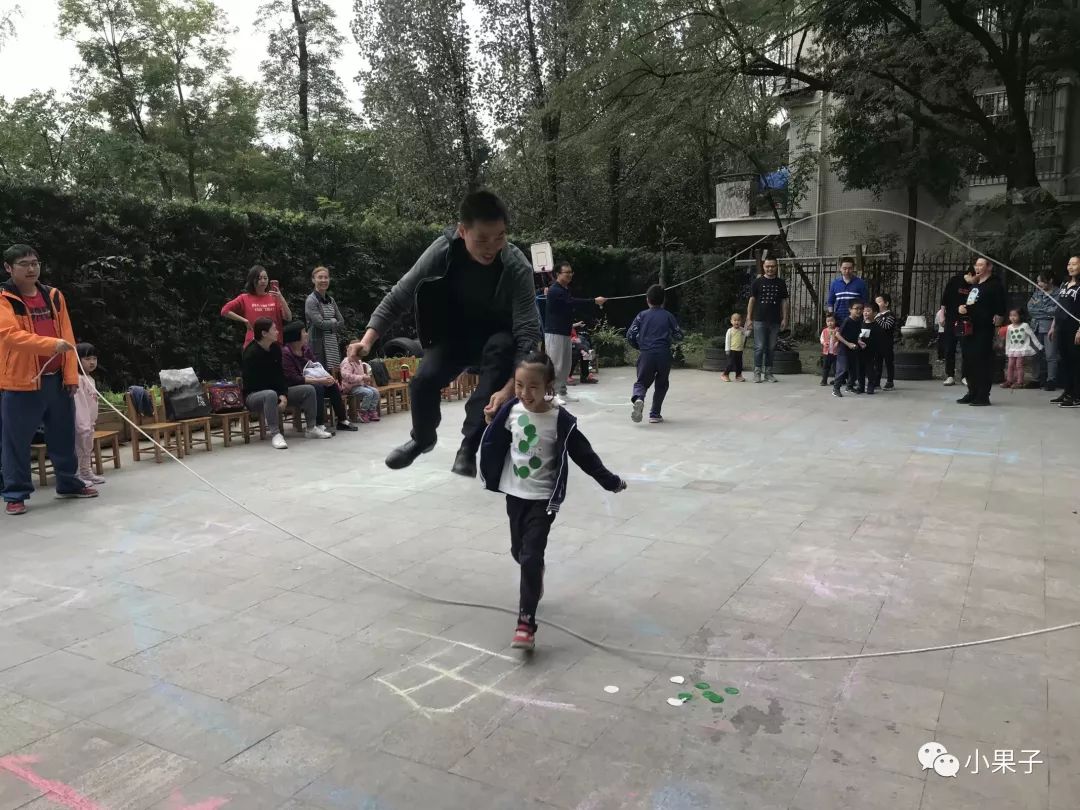 与绳子相关的游戏还在进行中,“跳大绳”或许是很多家长童年最常玩的游戏,这一次,拉着孩子,抱着孩子,在甩动的大绳中,我们仿佛又重回儿时的课后时光,找到了童年的快乐。