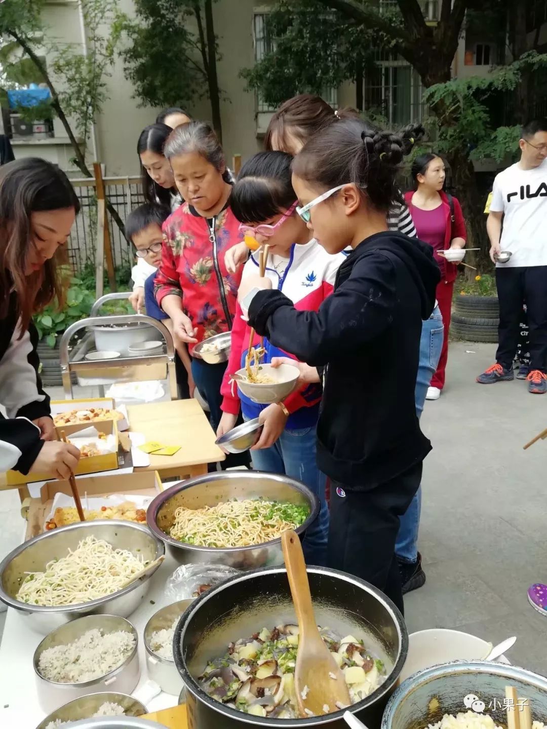 在全部运动项目结束后,万众期待的“百家宴”终于开始了,这一向是亲子运动会的重头戏,也是最为温馨与感动的时刻:家长和孩子们共同布置就餐环境,有序地洗手,带上自己准备的餐具,并安静地就座,在老师的带领下唱《餐前歌》,然后排队有序地夹菜。秉承着我们日常的“一次不可夹太多菜,为后续夹菜的人留一些”的规则,大家共同分享美味的食物。就餐结束后,家长带领孩子一起清理自己座位的卫生,帮着把桌椅搬回教室。这一系列的就餐过程本身就是一种潜移默化的教育。