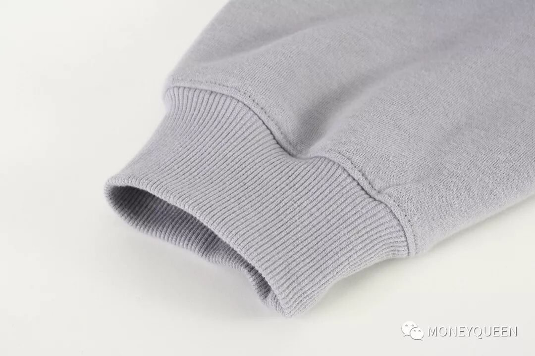 这款卫衣的zp是在8月底入手的,九月份开始动工。实物到手以后才发现,这款灰色卫衣完全是区别与普通的灰色,并非织出来的颜色,而是定制染出来的,相对于普通灰色而言,更难调一点。同时螺纹和面料一样定制包缸染色,区别与其他家为了省成本而用现成面料和螺纹拼接制作,导致整件衣服有色差,假到不能再假。所以光面料颜色就定缸染了很久才做出满意的颜色,毕竟老王做货是走心的