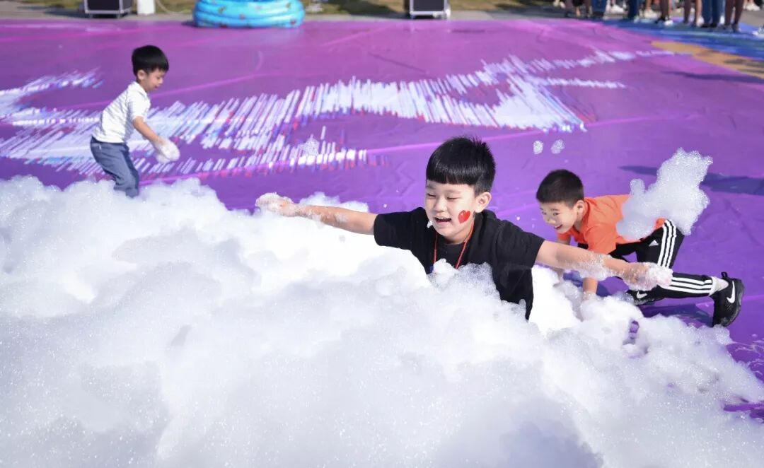 动感的音乐+热辣的舞蹈+各色彩粉+缤纷泡泡