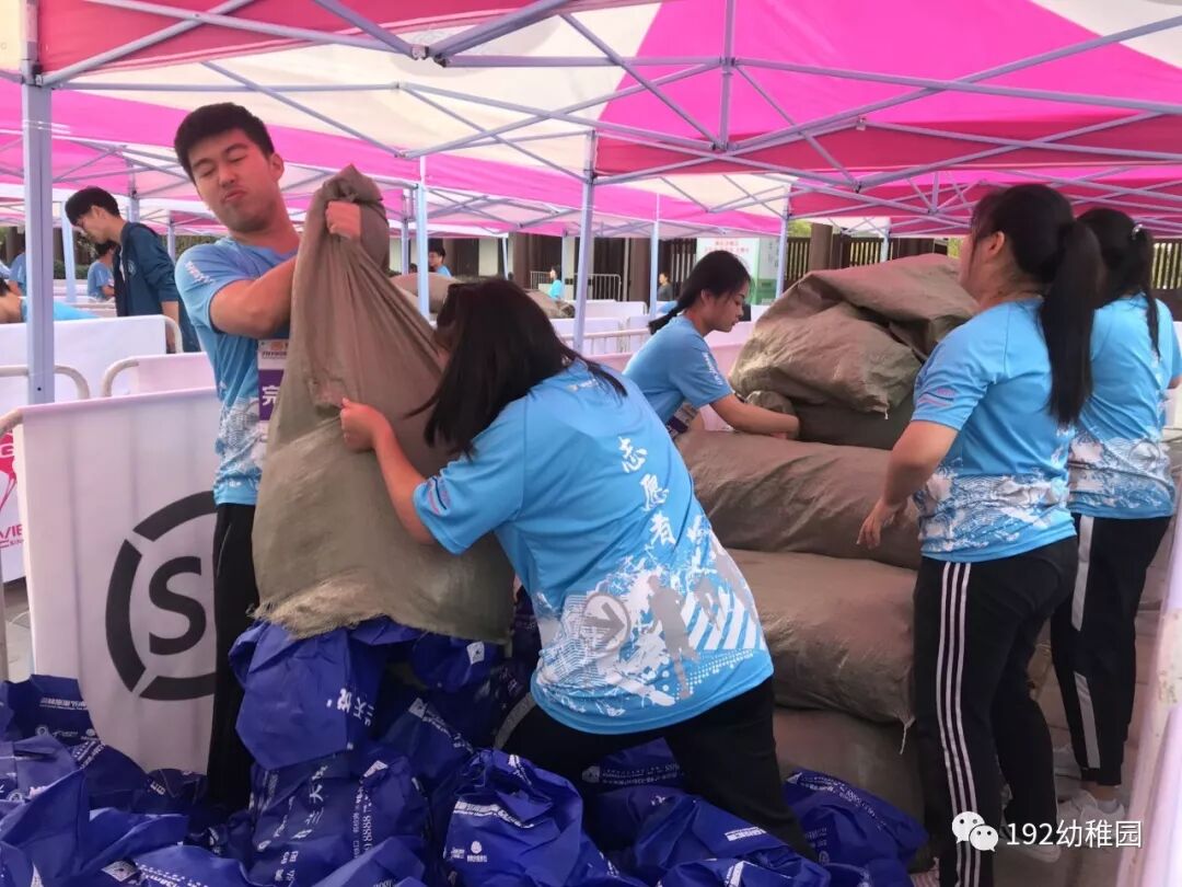 可见,举办方还是很细心的。然而我们的志愿者也是非常细心和积极热情的,早早就准备好了一切,等待着马拉松参与者的到来,并对每一个辛苦的马拉松参与者说“辛苦了”。