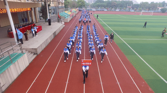 开幕式上,绿茵地,红跑道,激情澎湃。随着教务科长王铁一声令下,运动会入场式开始。身着军装的国旗方阵、校旗方阵迈着矫健的步伐,精神抖擞地领队入场,接着乐队、彩旗队、鲜花队方阵呼喊着嘹亮的口号缓缓迈入会场,三个专业部的48个班级方队,按预定的顺序,青春焕发地步入会场。他们神采奕奕,活力四射;他们勇于拼搏,团结进取;他们朝气蓬勃,气宇轩昂。