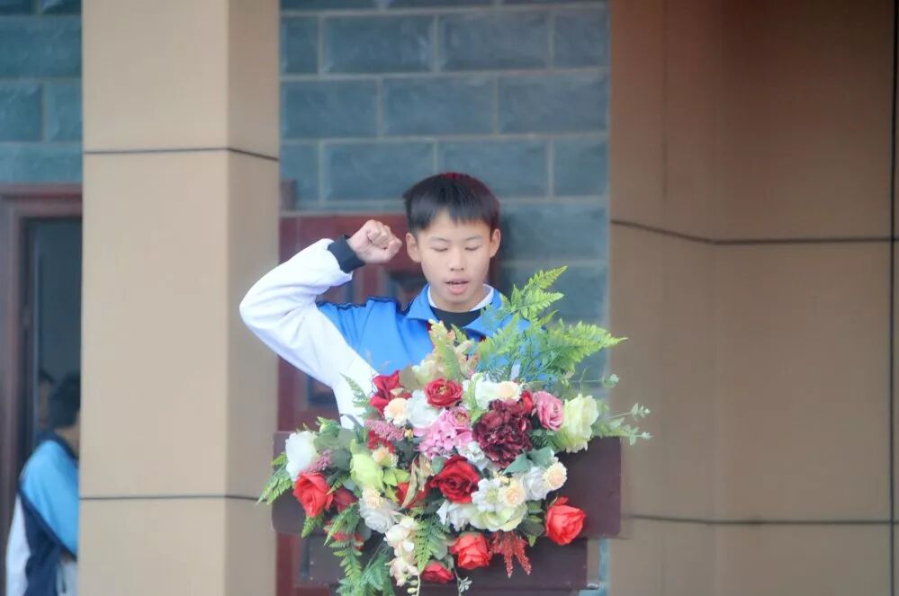 升国旗仪式后,副校长宋晓俏致开幕词,他希望运动员发扬“友谊第一,比赛第二,不怕困难,勇于拼搏”的精神,勇创佳绩。裁判员要公正裁判,做好服务工作。同学们要热爱集体,文明守纪,发扬团队合作精神,力争把本届运动会办成一次“安全、文明、创新”的盛会!