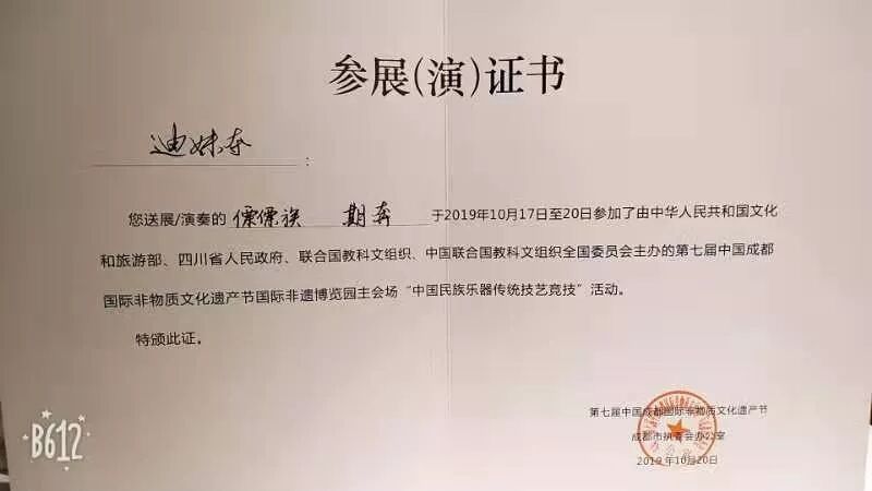 另外,此次活动中,我们的期奔和达比亚在全国80个民族乐器中获30强乐器项目奖。