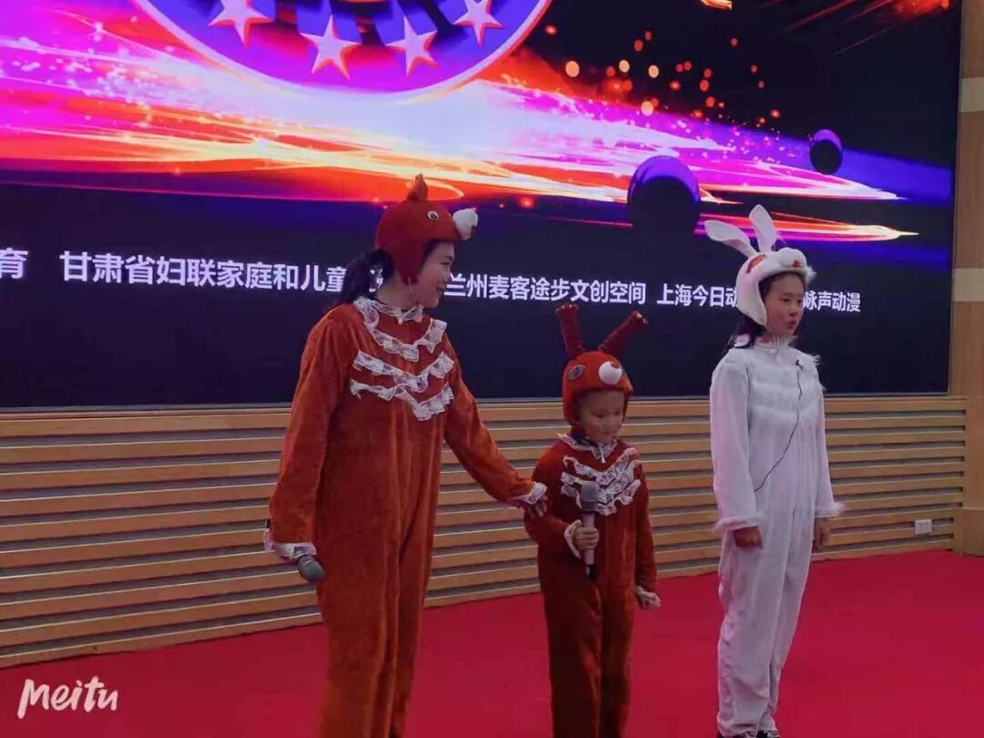甘肃省妇女联合会家庭和儿童工作部部长韩冰、甘肃少儿频道副总监宫钰芳为获得优秀组织奖的机构颁奖。