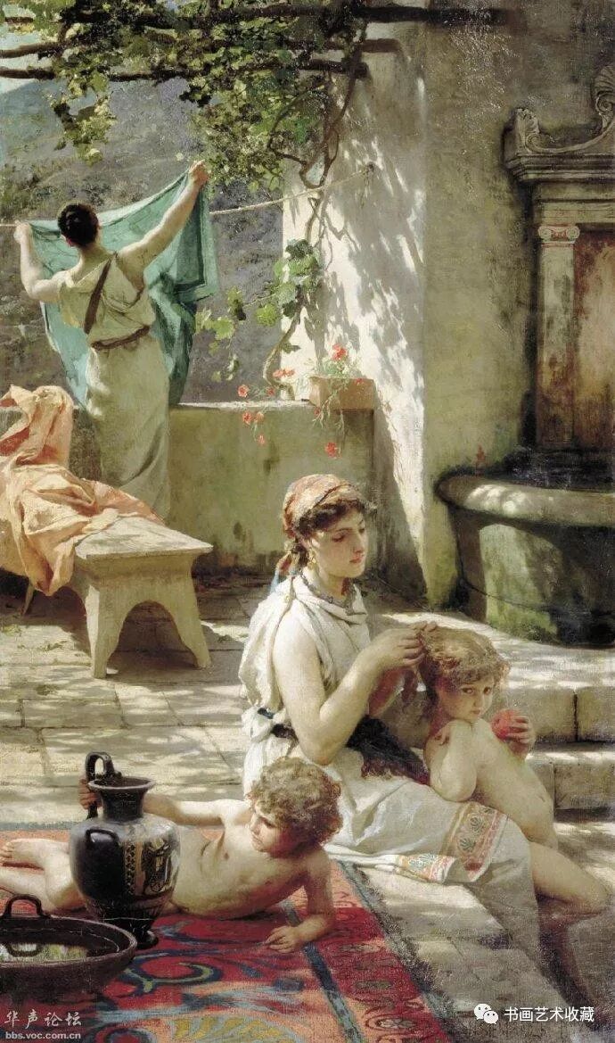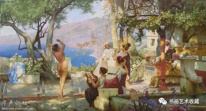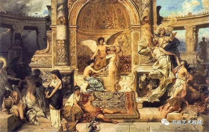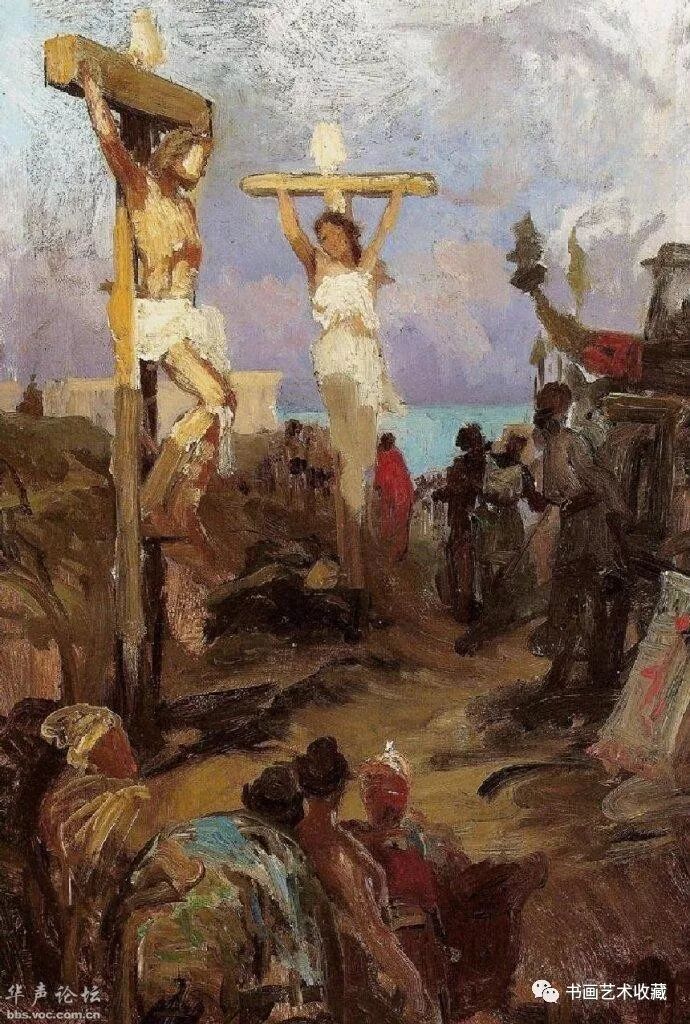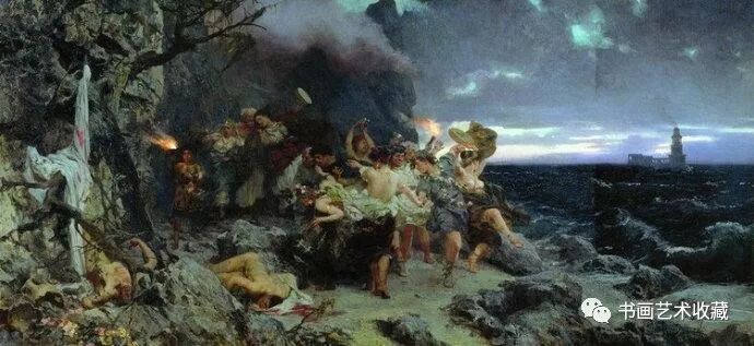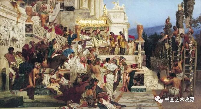 波兰画家西米尔拉德斯基(Henryk Siemiradzki,1843-1902)。作为一名画家,西米尔拉德斯基的绘画技巧和艺术水平,远远超过了同时代的所有俄罗斯的画家,甚至可以说,水平绝不在列宾、苏里柯夫之下。这位画家生活的年代正是欧洲新古典主义盛行的时期,因此,他的绘画题材也是以希腊罗马历史、神话为主,绘画风格也是逼真的新古典主义的。