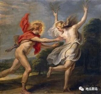 中了丘比特金箭的阿波罗追逐中了铅箭的达芙妮,不堪其扰的达芙妮被她的河神父亲变成了月桂树。