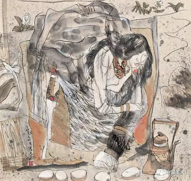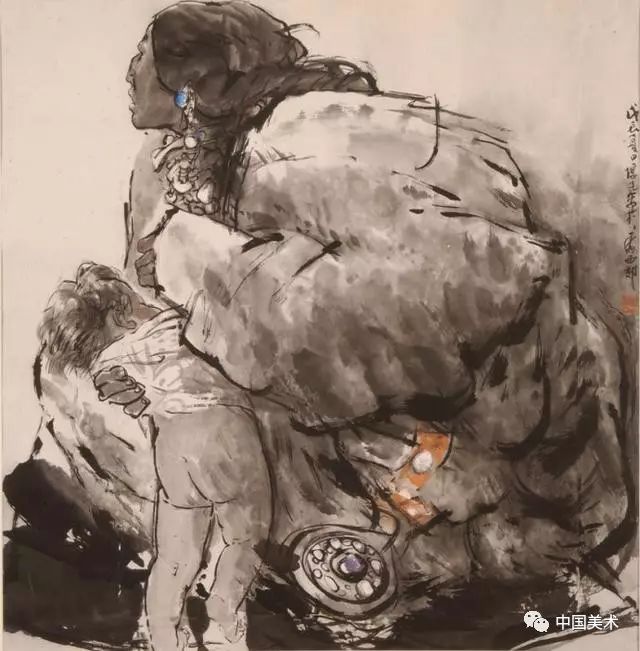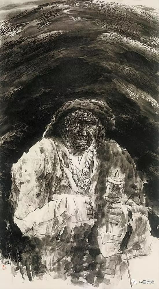 他也把黄宾虹的“积墨法”创造性地“继承”在自己的人物画中,“人物的衣服,比如藏族同胞的袍子,如果是普通的画法,没有厚重感,我就想起了积墨法,出来的厚度效果很不一样。”