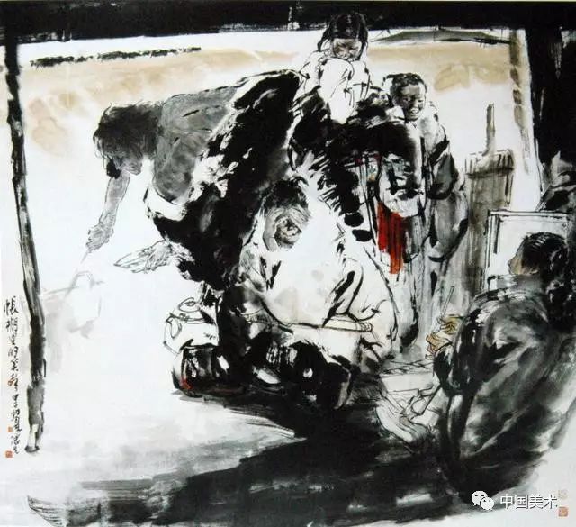 上世纪80年代初,方增先正式移居上海。此后,他的作品更充满了令人惊喜的风格之变。《帐篷里的笑声》 是他到上海后创作的第一幅画,尽管画里的人物依然是他熟悉的藏民题材,但画作中大块墨块的运用已经跟之前的浙派人物画明显不同,充满了现代的海派气息。