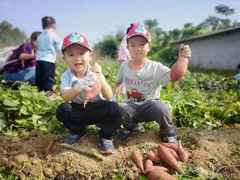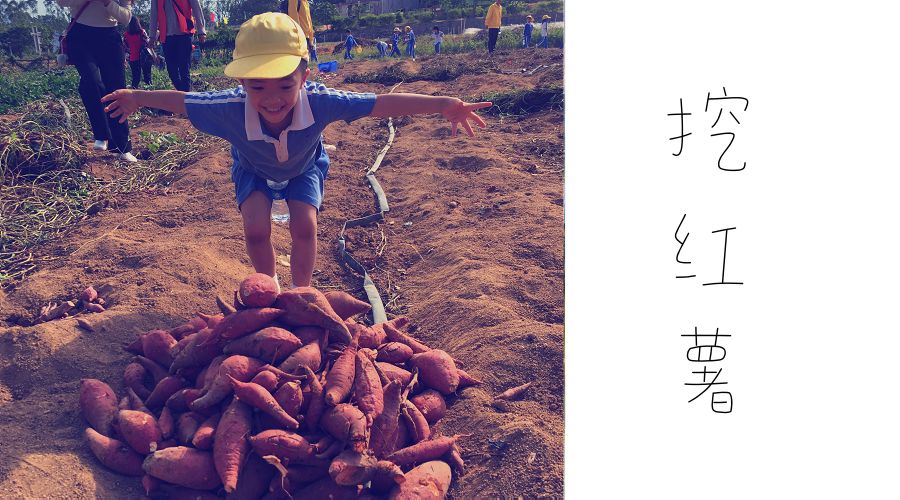 小朋友们都爱吃甜甜的烤红薯,要知道胖胖的红薯都是藏在绿油油的红薯叶下面的泥土中的哦。小朋友们要先拨开番薯叶,然后挥动小锄头扒开泥土,才能看到大大的红薯冒了个头,最后齐心协力,拔出大红薯。